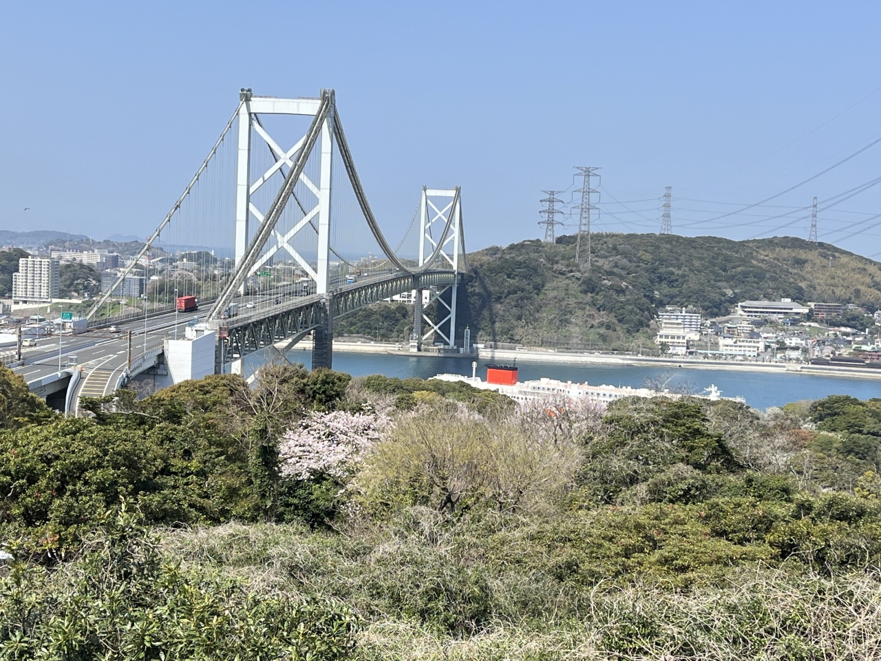 下関にあるパーキングエリアで、下関から門司港へ行く際に立ち寄りました。新しくて綺麗な施設でした。真上には、関門橋が通っており、橋を間近で見ることができます。とても迫力のある光景でした。また、対岸には門司の街が見え、九州が近いことを実感できます。