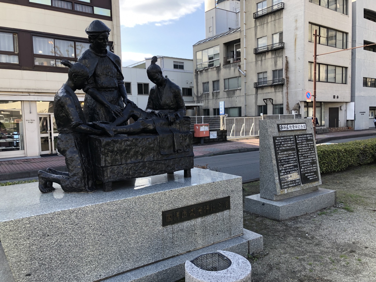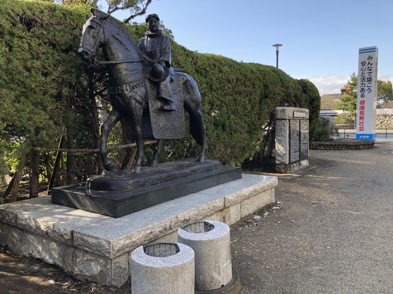 天正遣欧少年使節の一人として知られる伊東マンショの像です。府内城跡に近い場所にあるので、城跡側からもアクセスしやすいです。南蛮風の服を身に着けているのはイメージ通りでしたが、馬に乗っているのは珍しいと思いました。