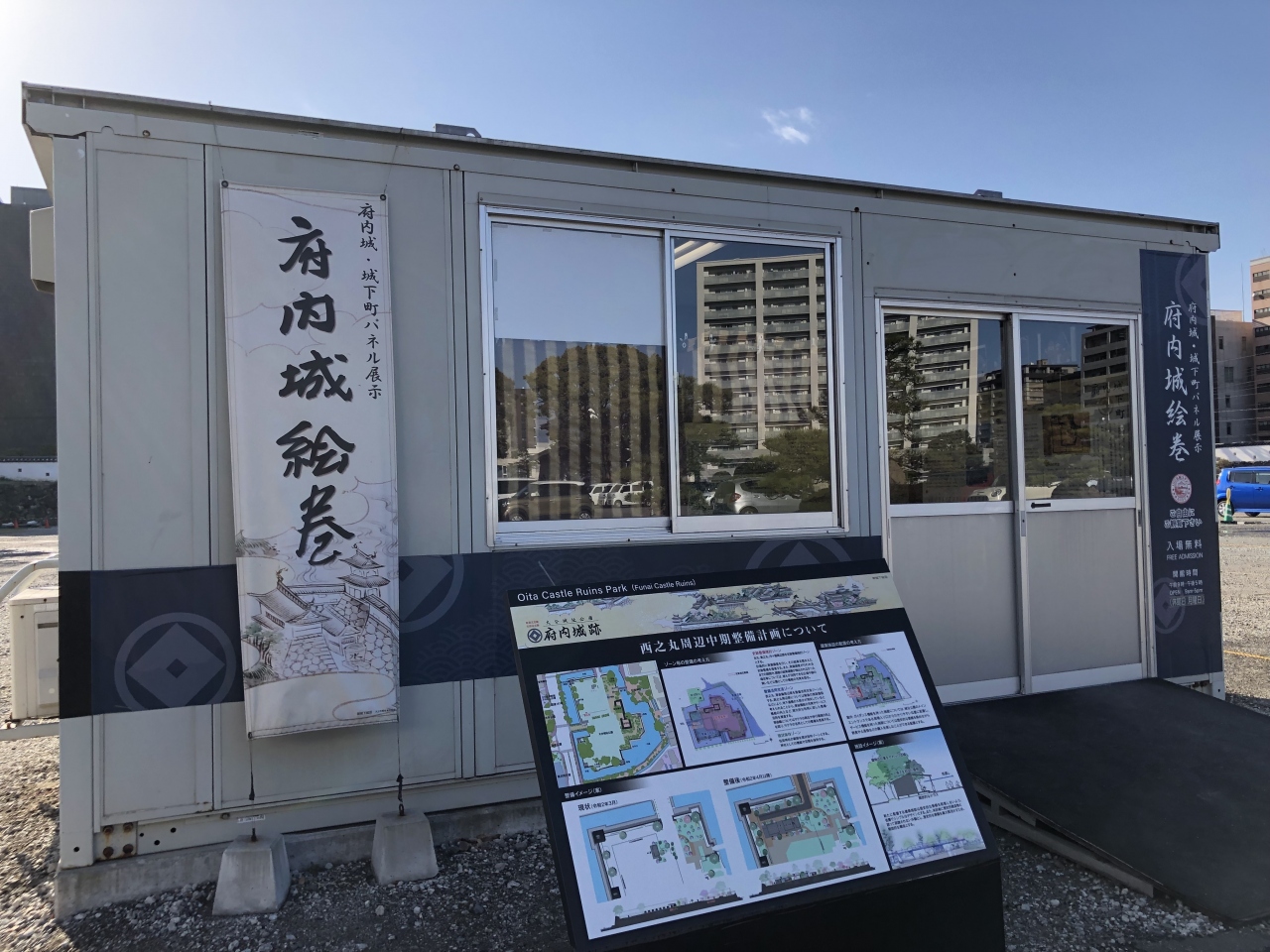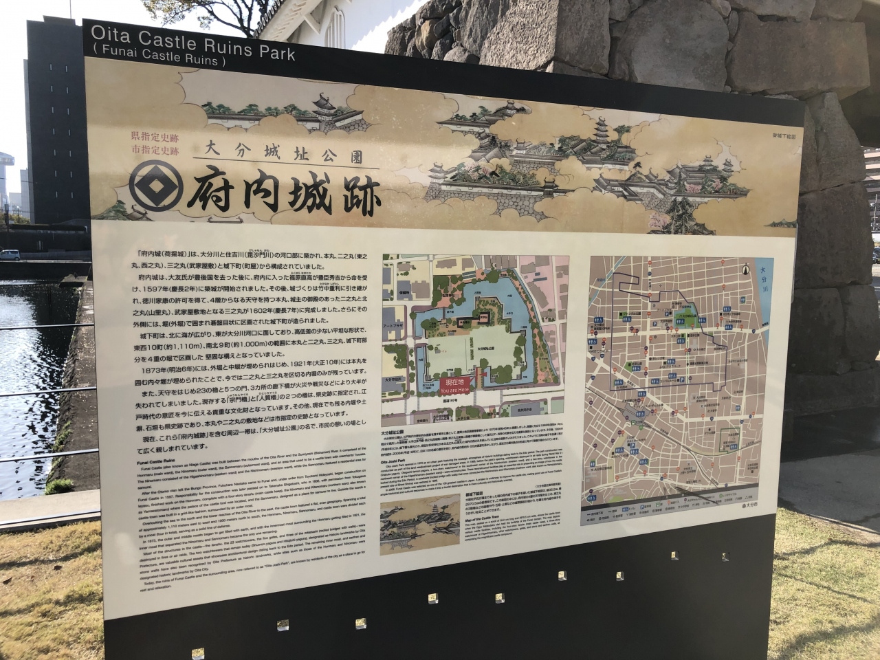 大分駅からは徒歩で15分ほどです。私はバスでアクセスしました。日本100名城の一つです。堀や櫓が残っていて、立派な佇まいでした。ただ、一部が駐車場として使われているなど、そこまで観光地として整備されている感じではなかったです。小さなプレハブがちょっとした資料館になっていて、パネル展示が見られます。