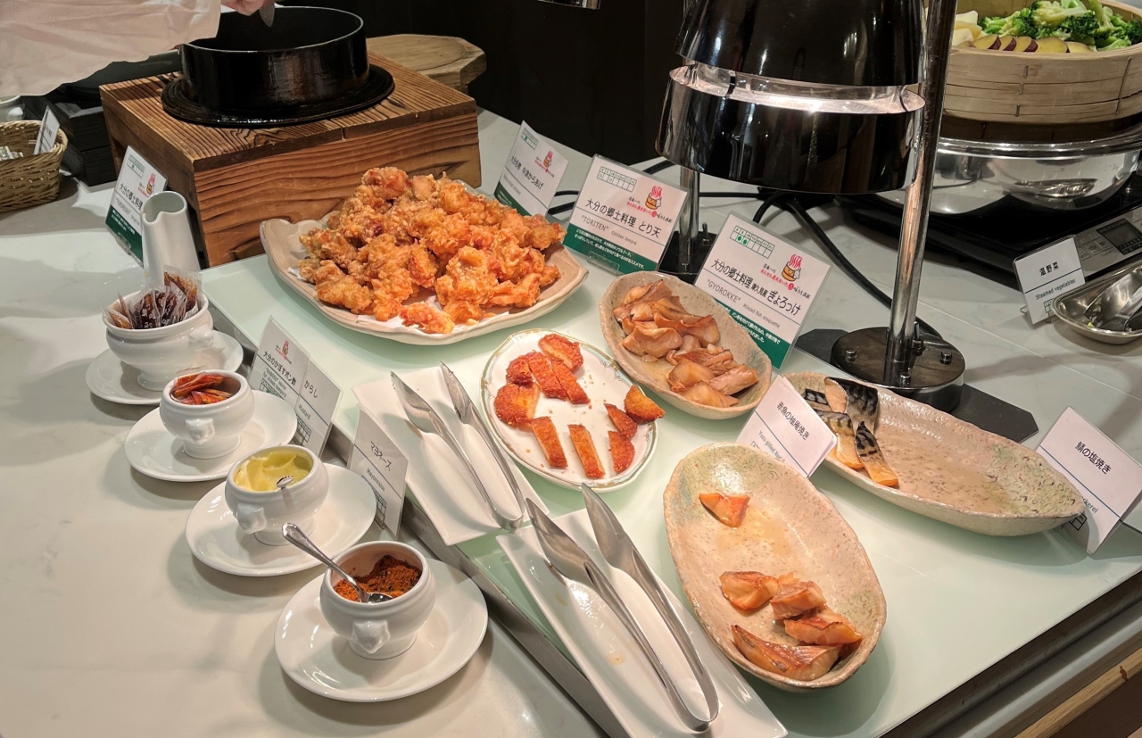 ホテル日航大分 オアシスタワーの2階です。宿泊した際に朝食で利用しました。朝食は、ビュッフェスタイルです。メニューには、りゅうきゅうや中津唐揚げ、とり天など、大分の郷土料理がズラリと並びました。納豆も、大分産大豆を使ったもので、地産地消の料理を堪能できました。