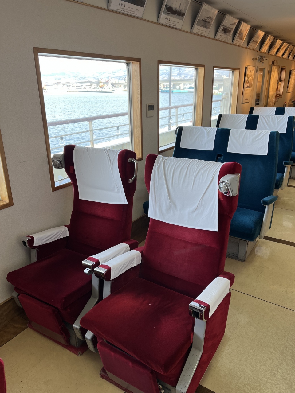 青函連絡船として、青森と函館間を運航していた「摩周丸」が函館駅前に保存され、内部は博物館となっています。船内は、現役当時の姿を残しつつ、資料などを展示していました。特に、操舵室や無線室などは、当時のまま保存されていて、とても貴重だと思います。なお、冬期は雪が積もっているため、残念ながら、甲板には出られませんでした。