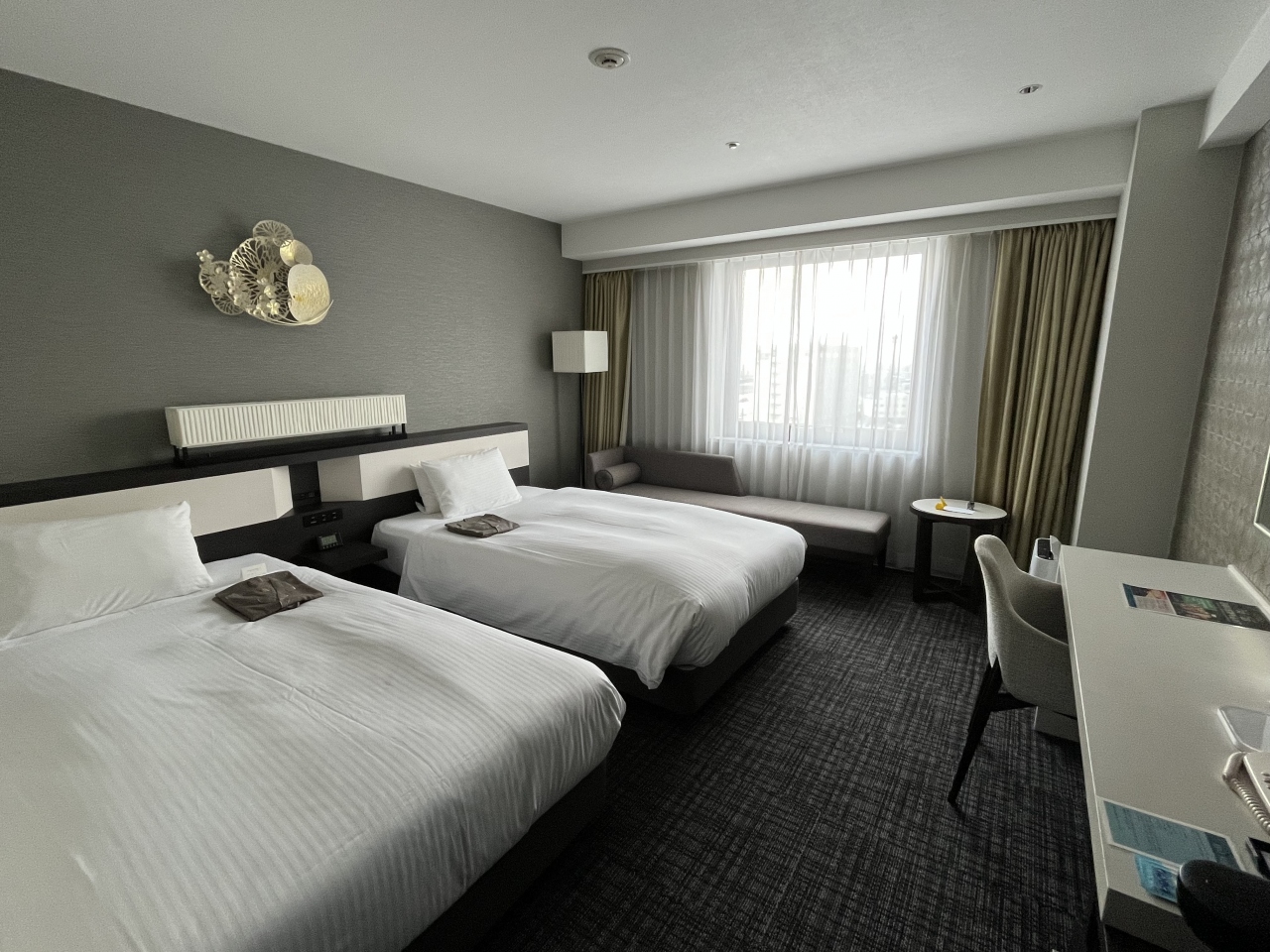 ツインルームに宿泊しました。清潔で快適に過ごせるホテルです。眺望は、シティビューで、駅側の眺望でした。ちょうど駅前でイルミネーションイベントをやっていたので、部屋からも見えて良かったです。