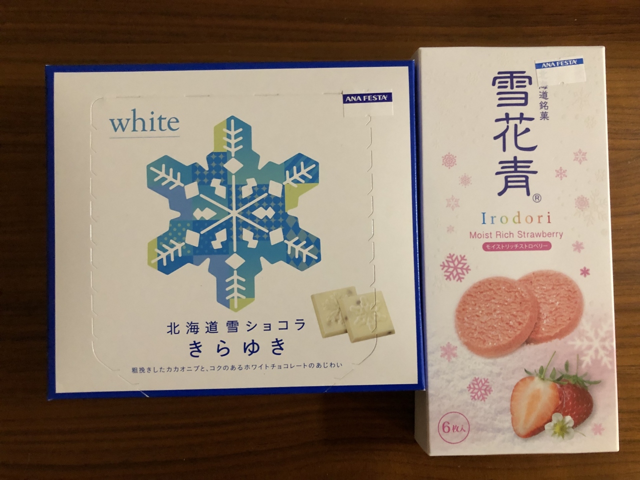 函館空港のANA FESTAは、空港2階の一番端にあります。搭乗前にお土産を購入しました。一般的なお土産はもちろん、ANA FESTA限定商品を取り扱っているのが魅力的です。人気北海道土産「き花」のキャラメル味は、ANA FESTA限定販売でした。