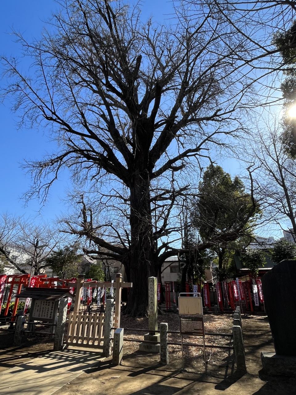 鬼子母神堂の境内に立派なイチョウの木がありました。見事な枝ぶりで見上げる大きさでした。推定樹齢は600年以上とのことです。周囲は柵で囲まれていて、大切に保護されていました。冬だったので、すっかり葉は落ちていましたが、紅葉の時期はさらに見事だと思います。