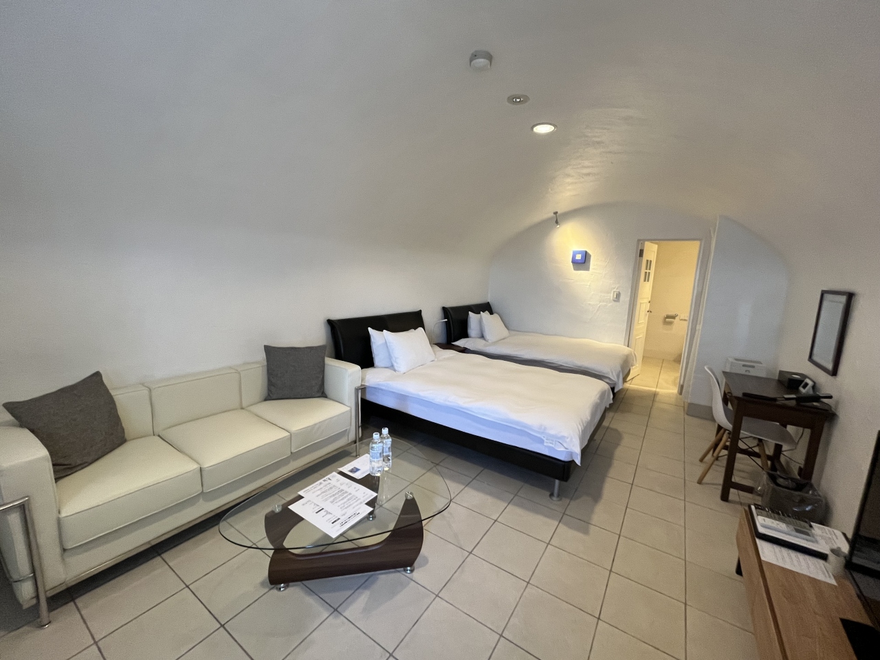 ダブルベッドルームに宿泊しました。部屋はシャワーのみでしたが、温泉があったので充分でした。露天風呂付の部屋があるためか、温泉は混雑もなく利用できました。バーラウンジでは、アルコールを含めて、ドリンクサービスがあって嬉しいです。