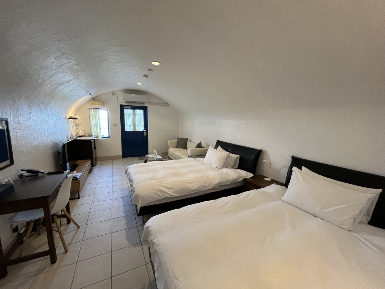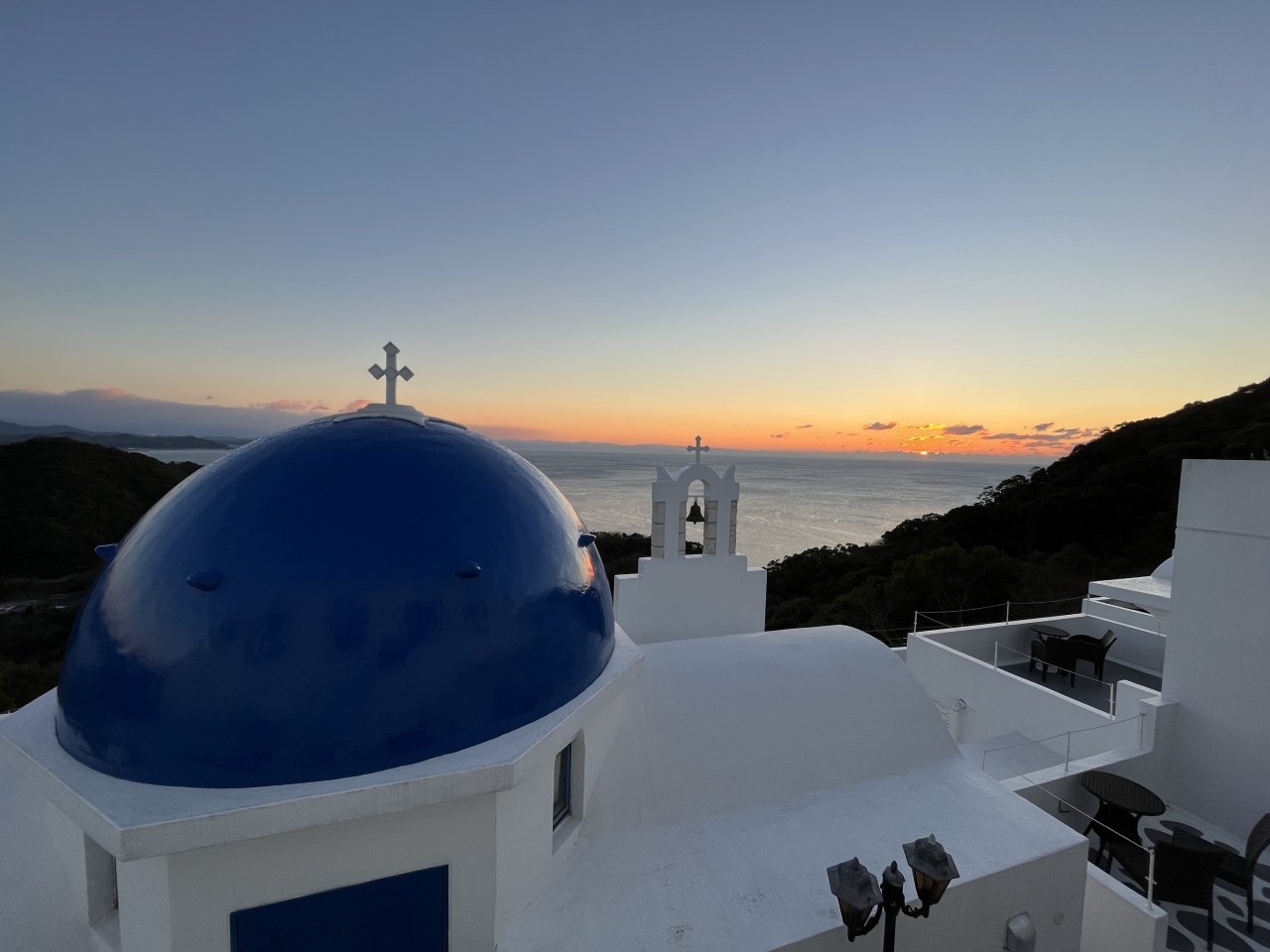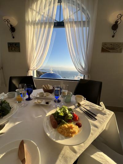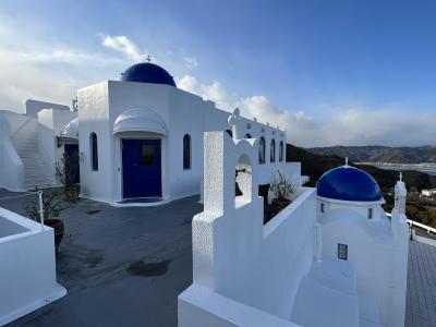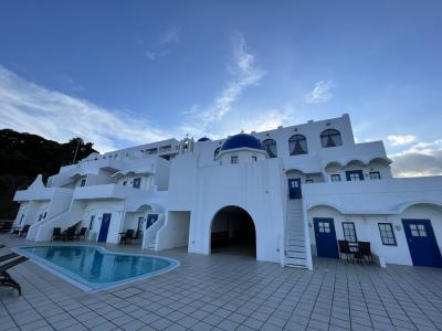 ギリシャのサントリーニ島を模したホテルです。実際にサントリーニ島に行ったこともありますが、比べてもガッカリするようなことはなかったです。充分、異国情緒を味わえます。青い丸い屋根や白い壁など、見事に再現されています。崖をくりぬいた洞窟のような部屋も雰囲気抜群でした。