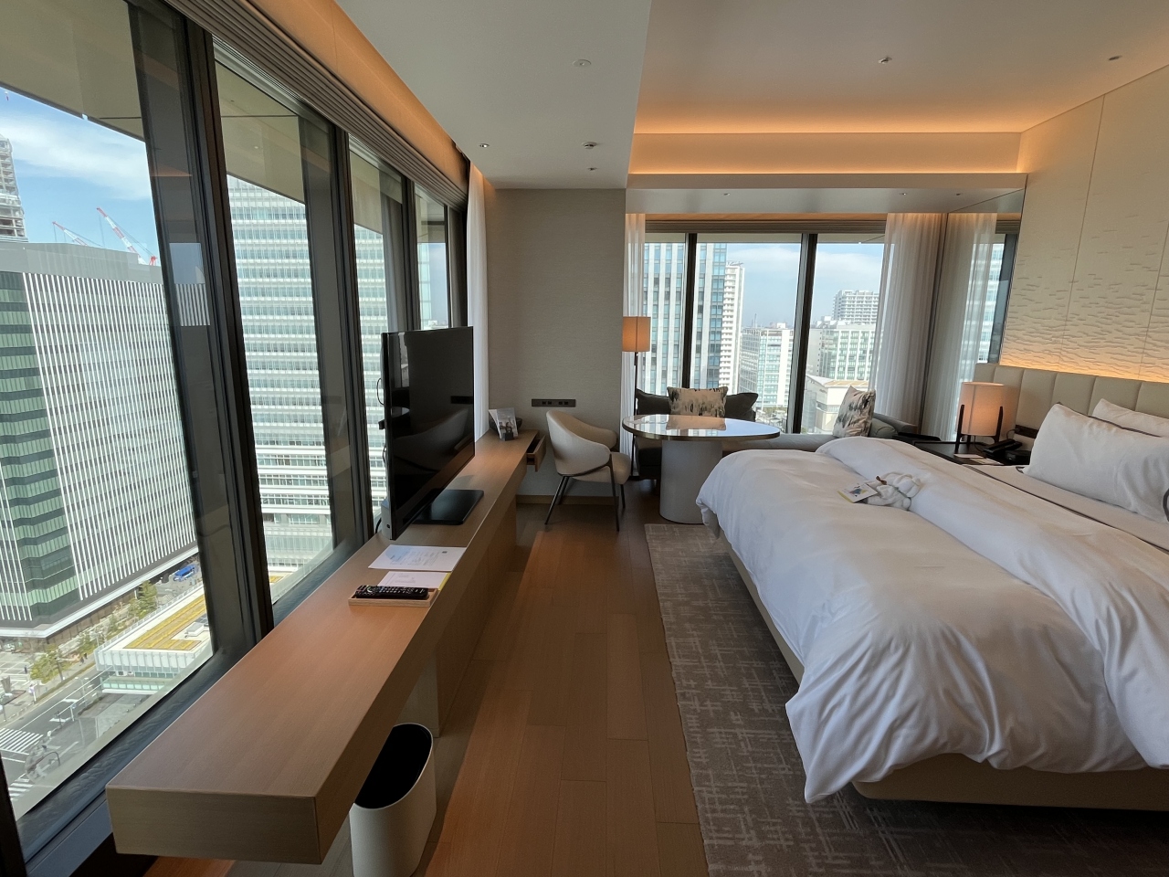 昨年7月に続き、2度目の宿泊でした。今回は、コーナーキングルームに宿泊しました。前回のデラックスルームに比べて、窓が2面にあるため、開放的で良かったです。眺望も楽しめて、部屋から富士山も見えました。
