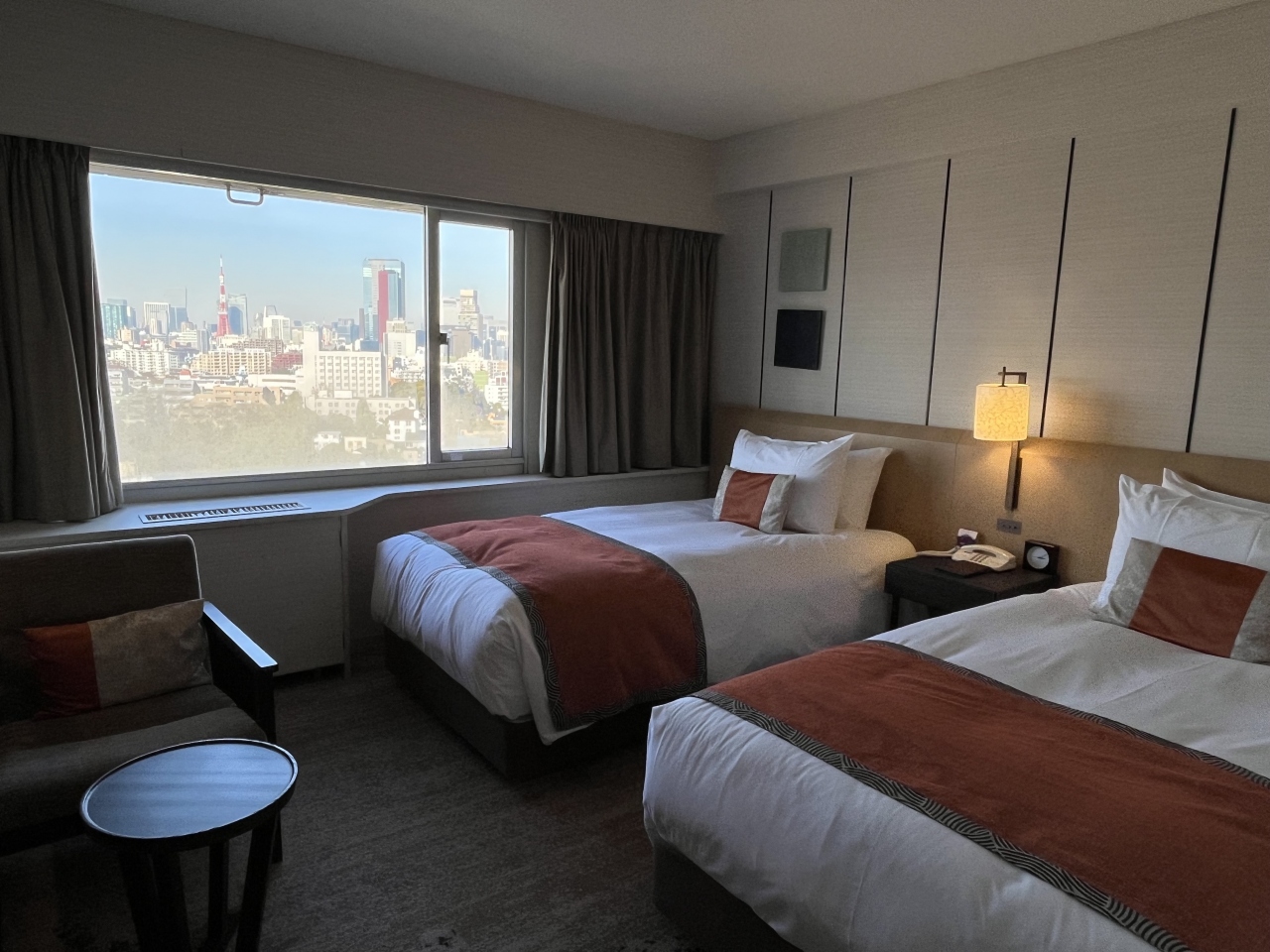クラブデラックスツインに朝食付きで宿泊しました。部屋からは東京タワーが見えて、夜景も楽しめました。また、クラブフロアに宿泊すると、クラブラウンジが利用できます。ティータイム、カクテルタイムと充実したサービスでした。さらに、同じ敷地内にあるグランドプリンスホテル新高輪、ザ・プリンスさくらタワーのクラブラウンジも利用できます。それぞれ特色があるので、違いを楽しめて良かったです。朝食は、グランカフェパティオで和洋食のビュッフェでした。