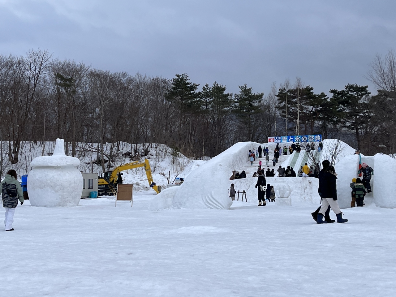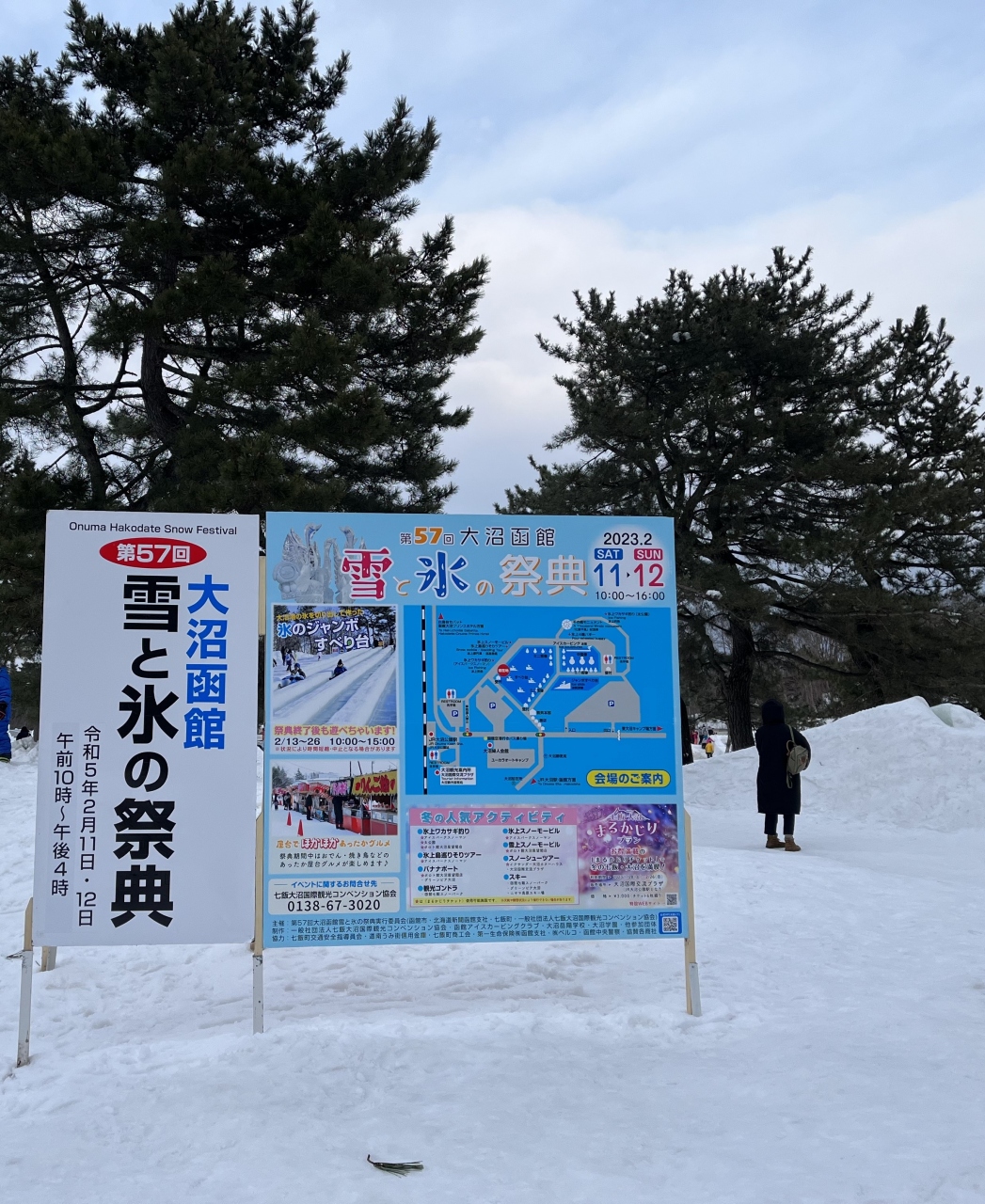 毎年、2月に大沼で開催されるお祭りです。今回で57回目になるそうです。大沼公園広場を会場に、氷像や氷のジャンボ滑り台が設置されていました。また、屋台も出店していて、人出も多く賑やかでした。大規模なイベントではありませんが、冬ならではの大沼の風景を楽しめるお勧めのイベントです。
