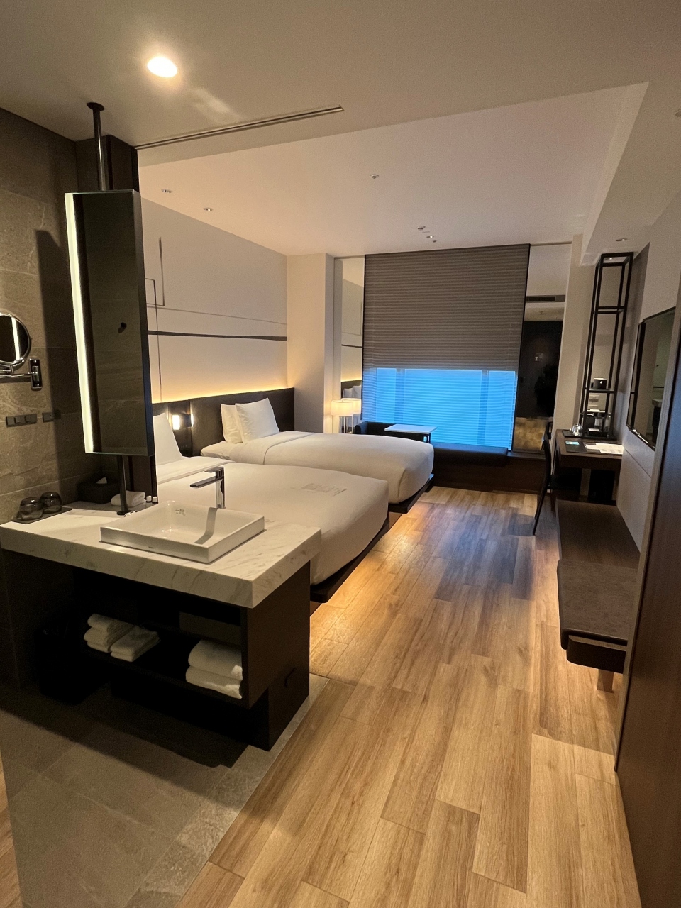 東銀座駅近くにあるマリオット系のホテルです。プライムスーペリア2ツインに朝食付きで1泊しました。新しくて綺麗なホテルで、快適に過ごせました。バスルームは洗い場があるタイプで使いやすかったです。なお、シャワーのみの部屋もあるので、事前に確認の上、予約することをお勧めします。