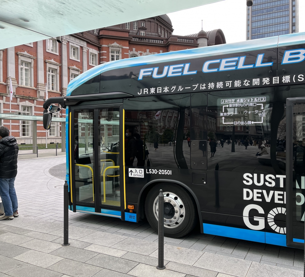 水素を燃料にして運行されているバスで、東京駅と竹芝を結んでいます。無料で利用できる嬉しいバスです。以前利用した際は、ほとんど利用者がいませんでしたが、認知度があがったのか、結構混雑しました。東京タワーなどの人気観光スポットも経由します。