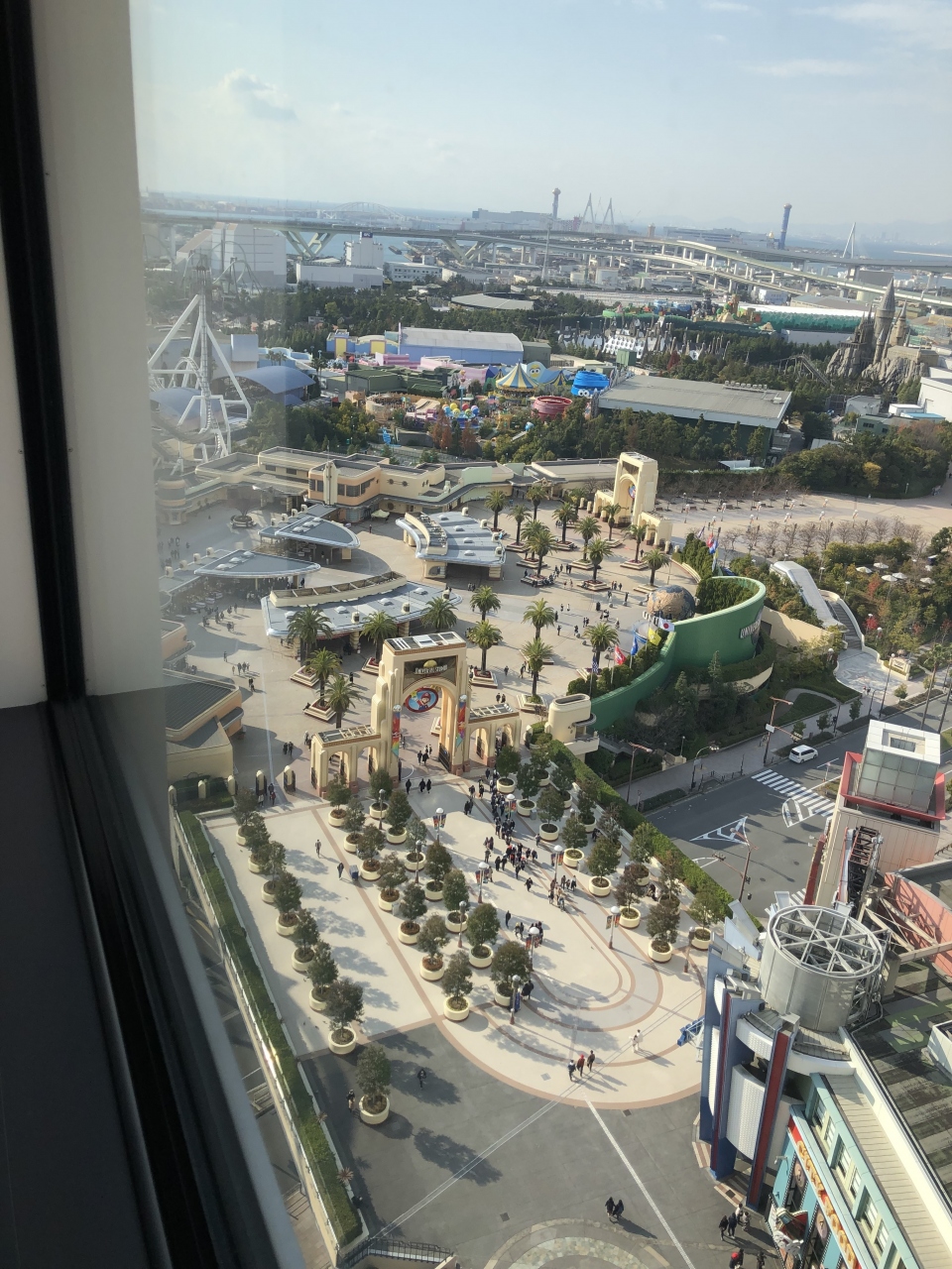 USJに行った際、後泊で利用しました。正面ゲートすぐ近くにあるため、とても便利です。宿泊したのは、スーペリアフロアのシティビュールームです。パークビューでは無いものの、少しだけパーク部分も見えました。