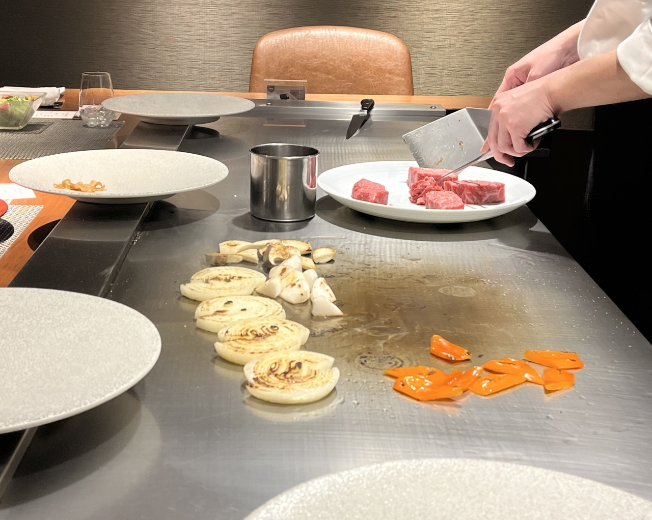 三宮にある鉄板焼き店です。ランチで利用しました。JA直営のお店なので、リーズナブルに神戸牛がいただけます。個室だったので、落ち着いて食事ができました。目の前でシェフが焼き上げてくれるパフォーマンスも見られて良かったです。