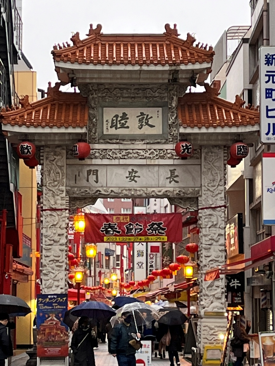 12月中旬に南京町に行った際、ちょうどこのイベントが開催されていました。毎年、12月から1月にかけて開催される恒例のイベントだそうです。南京町一帯に、赤いランタンが飾られていて、華やかな雰囲気でした。日没後は、ランタンがライトアップされるので、そちらもお勧めです。
