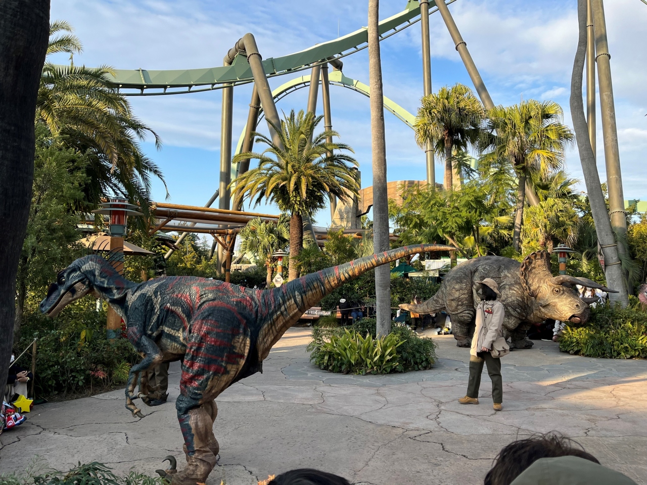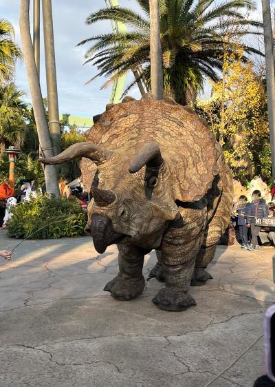 ジュラシック・パークエリアにいた時に、たまたまこちらのショーが開催されており、運良く見ることができました。恐竜たちがパレードするもので、なりきり具合がリアルでした。近くで見ても、本物さながらの見た目や動きで楽しめました。