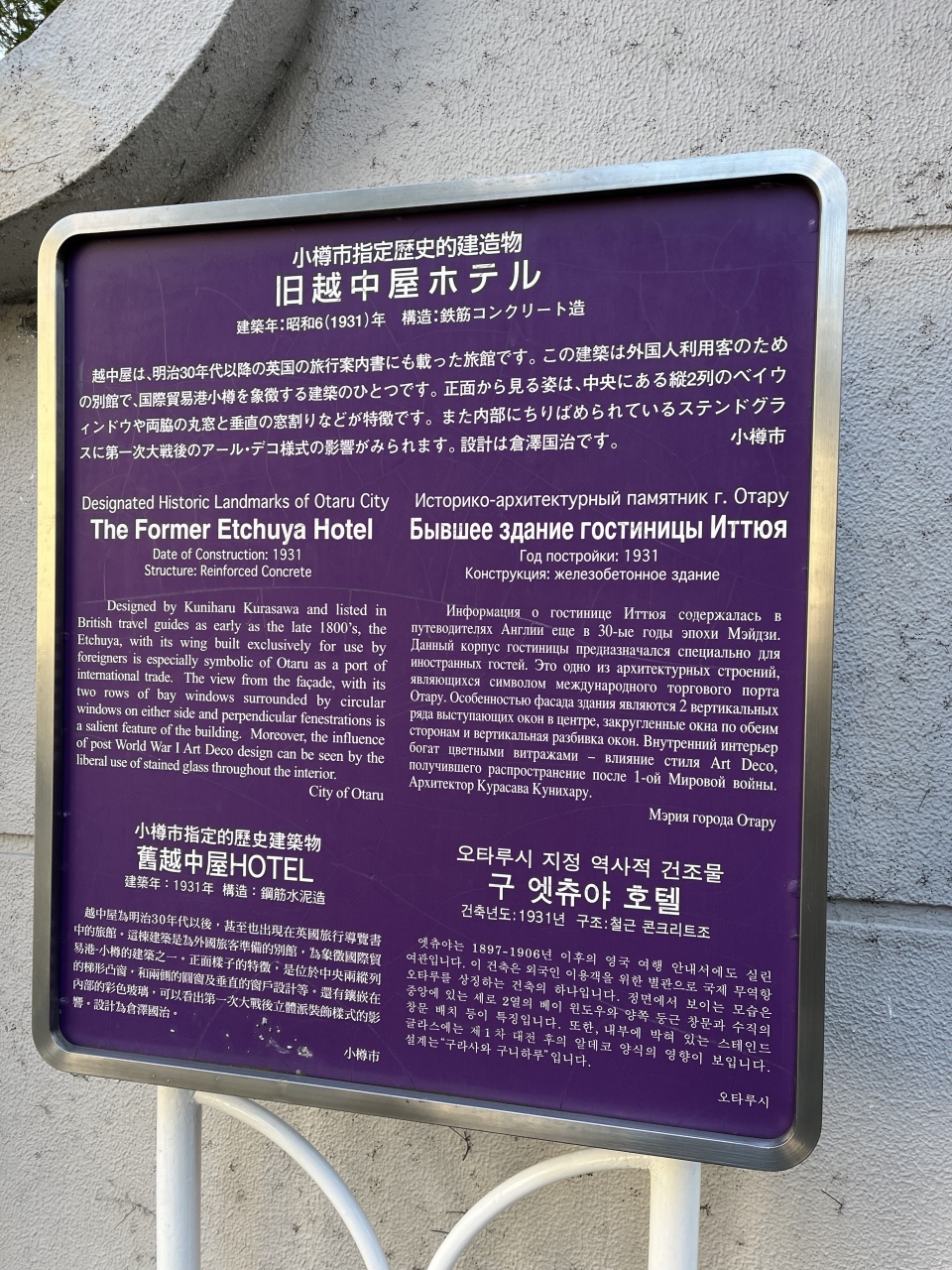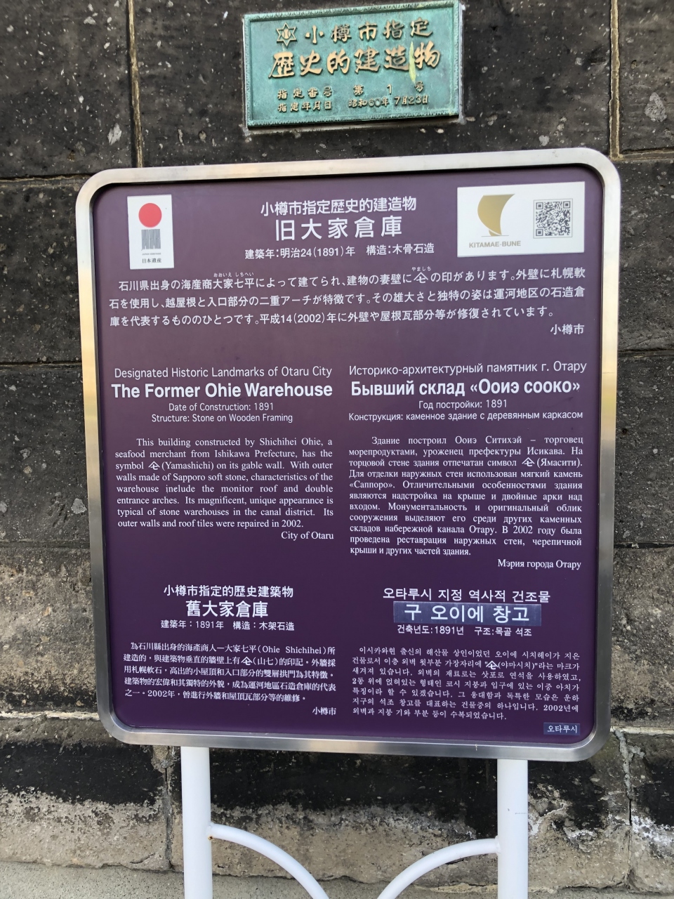 小樽運河沿いにある観光案内所です。歴史的建造物である旧小樽倉庫の南側部分が「運河プラザ」となっています。中は広く、カフェや土産物店も併設していました。冬季限定の展示である「ワイングラスタワー」も見られて良かったです。