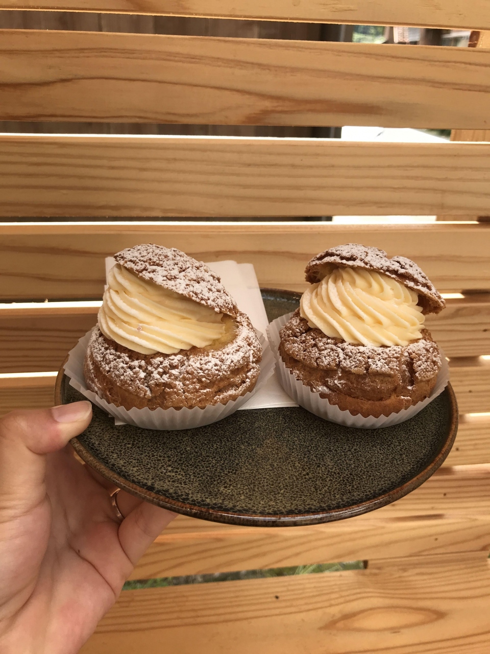 バライテぃー番組のボンビーガールで起業ガールとして特集されていたお店。お菓子で和歌山を元気に!がコンセプトのパティスリーで、シュークリーム1本勝負の販売となっています。(時期によっては、焼き菓子なども置いているかも)1個350円のシュークリームは、ネットでの予約販売も完売、店頭での当日販売も1時間前に配られる整理券も即なくなりますので、早めに行かれることをおすすめします。整理券をもらって、1時間ほど本宮観光もおすすめです。中はカスタードクリームたっぷり、外のシューもサックサクで本当おいしいです。是非、食べてほしい一品です。