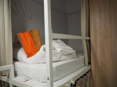こんかい、ドミトリーの部屋に泊まりました。以前から評判がよく泊まってみたいところでした。2段ベッドの上段で上り下りが大変でしたが後はとてもよく、楽しく過ごさせていただきました。特によかったのが朝の食事です。期待はしていない分毎朝美味しくいただきました。又利用したいです