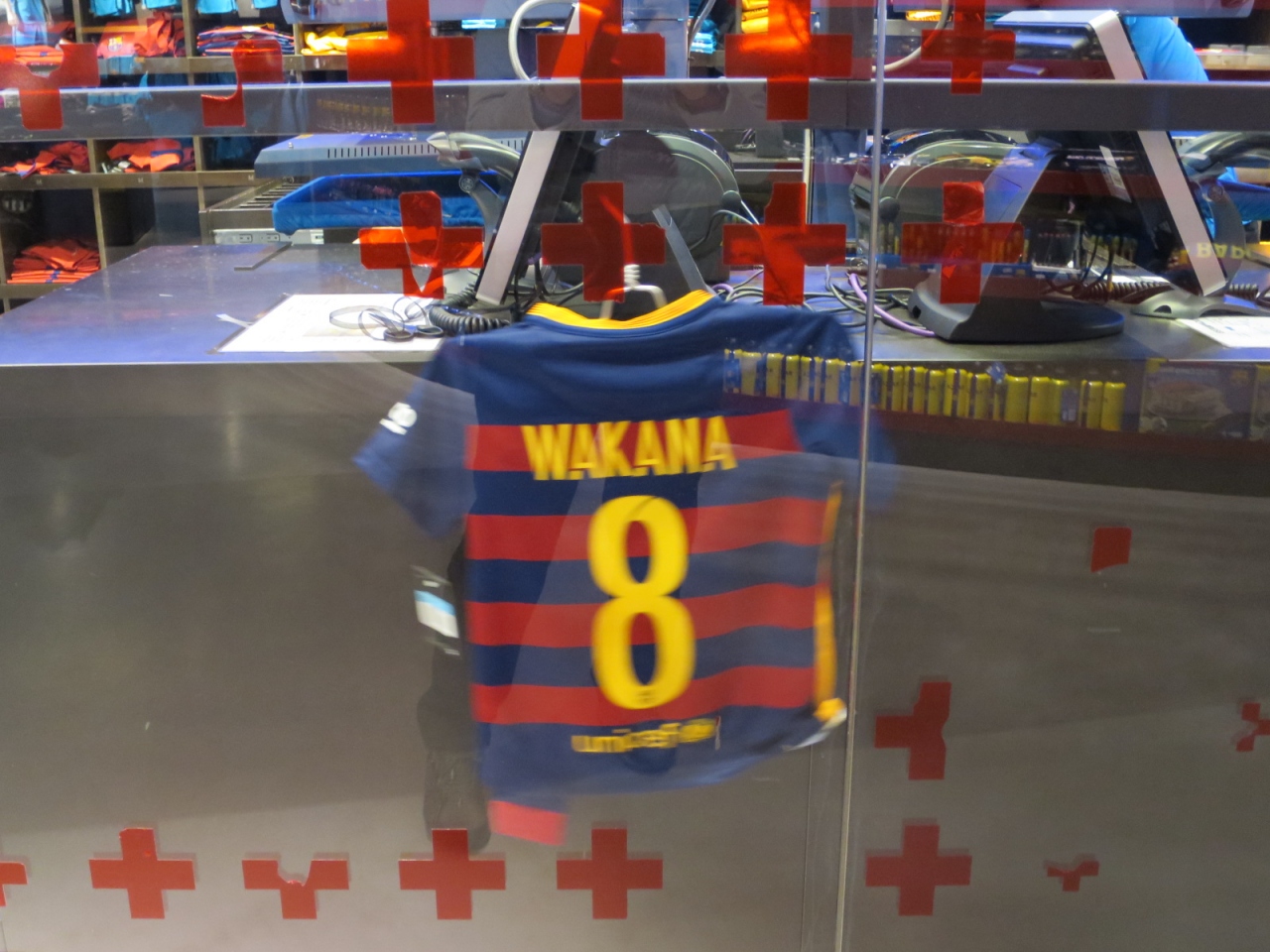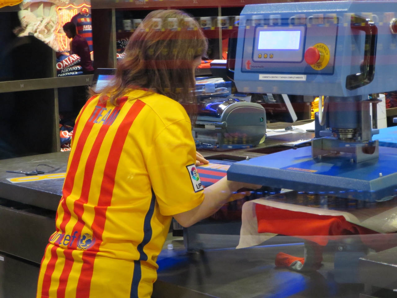 おすすめは、市内&空港にバルサ・ショップがありますが、ここで(下のフロア、1F)しか入手にすることが出来ない「好みの名前、背番号」をウェアにプリントしてくれるサービス(有料)です。