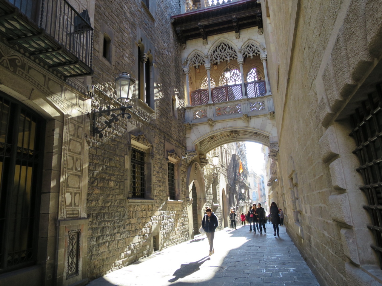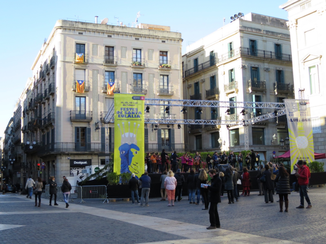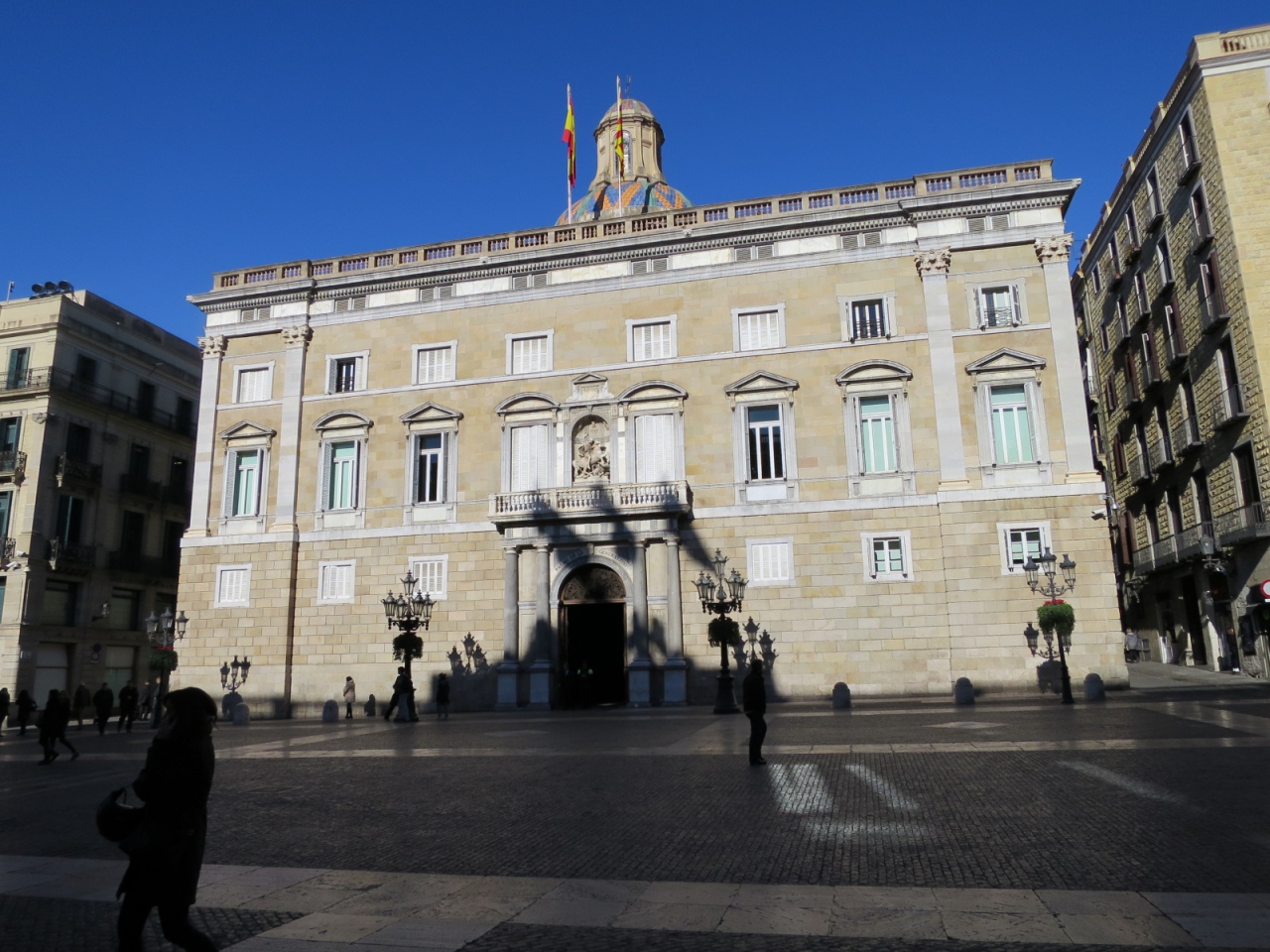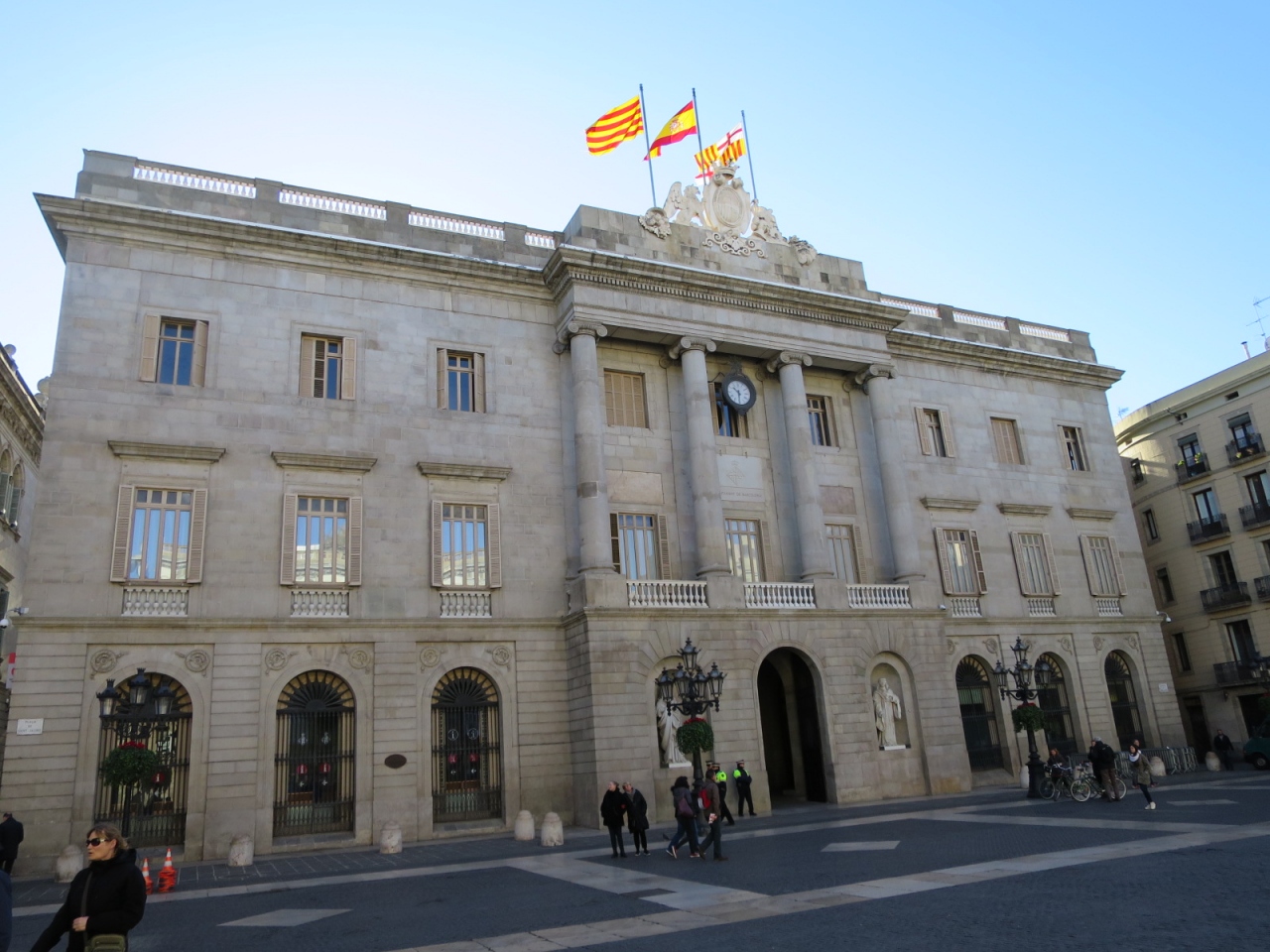 ゴシック地区の中心の為、また、カテドラルの前のホテルに宿泊していましたので、ランブラス通り方面に向かう時、何度もサン・ジャウマ広場を経由しました。人の往来は昼夜を問わず結構あります。広場は広くありませんが、政府庁と市庁舎にはさまれ、時折、イベントが催されているようです。観光スポットではなく移動の際のチェック・ポイント、位置確認として良いと思います。