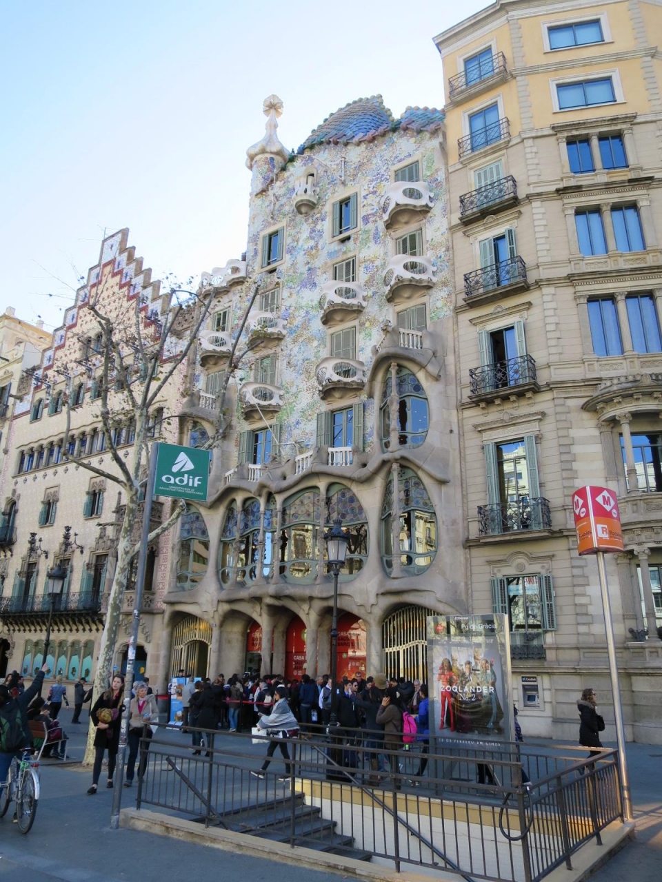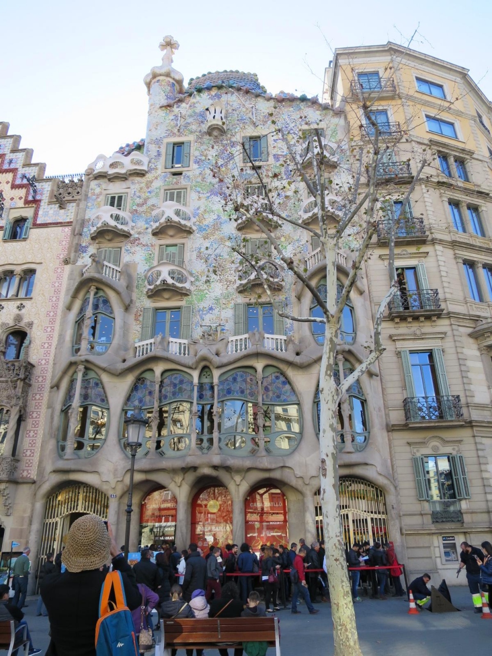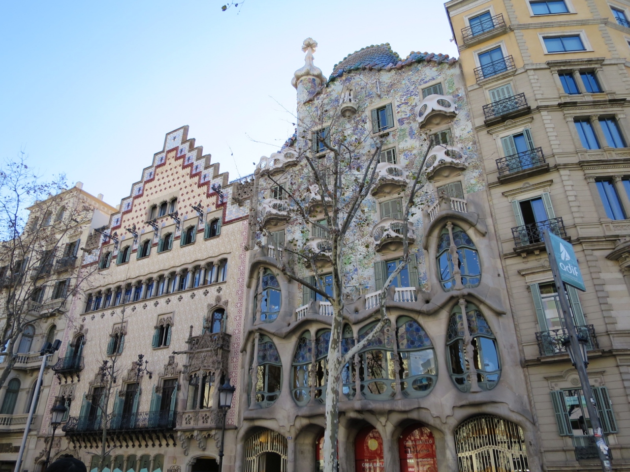 2005年にガウディ作品群の一つとして世界遺産に登録された「カサ・バトリョ」は、カタルーニャ広場から徒歩10分弱、または、地下鉄3号線パセオ・デ・グラシア駅から徒歩1分の場所にあり、グラシア通り面しています。左隣の「カサ・アマトリェール」とともに撮影スポットとしておすすめです。観光客で混雑しています、早朝の入場が良いかもしれません。