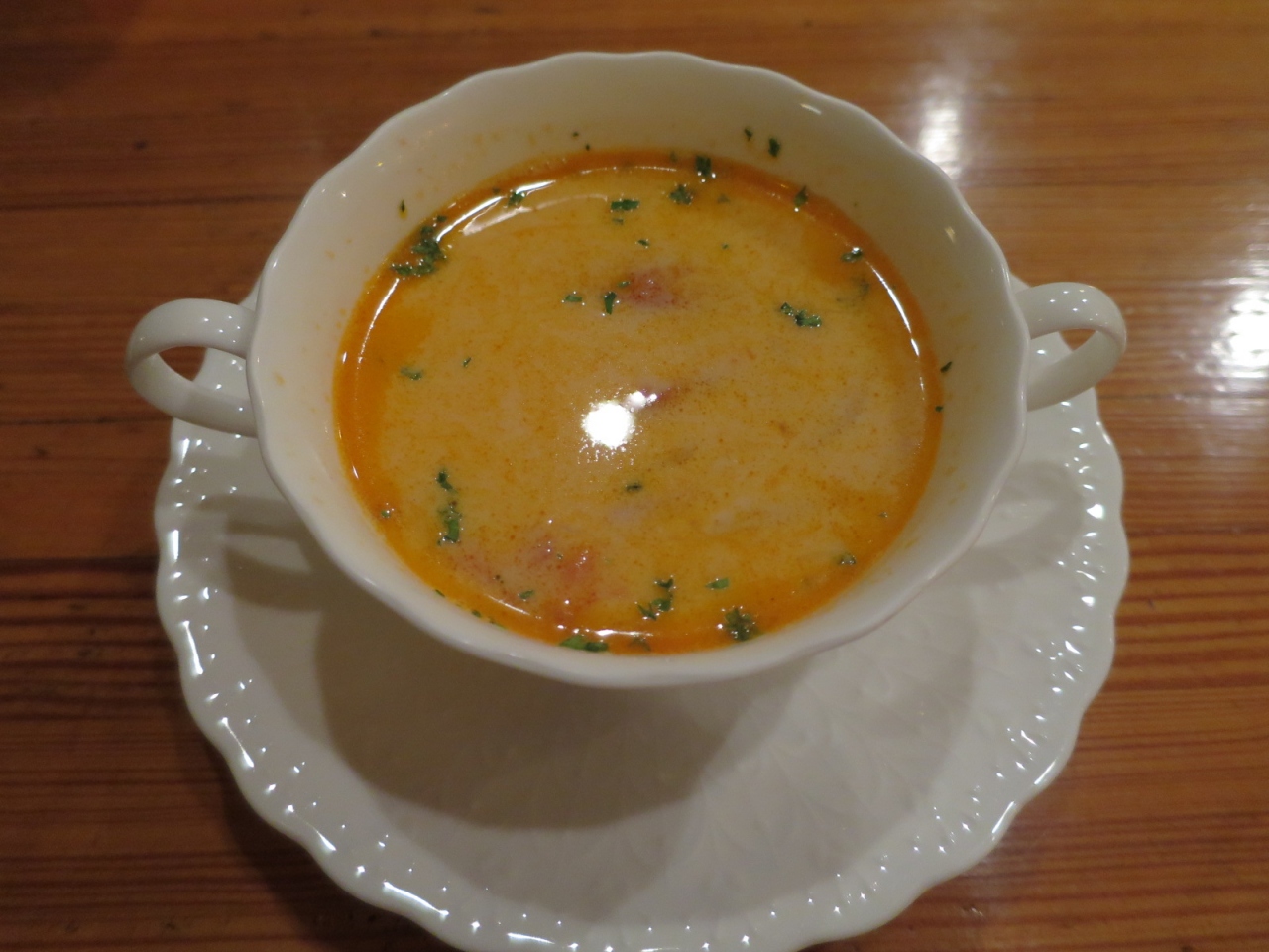 食事はフランス料理でしたが、料理の種類を多めにし、そして、量を小ぶりに配膳され、高齢者への配慮がうかがえました。配膳の途中に気に入った料理の「おかわり」を聞いていましたので、沢山食べたい人も満足出来ます、私は「ジャガイモの冷製スープ」をおかわりしました、美味しかったです。- 旅行時期