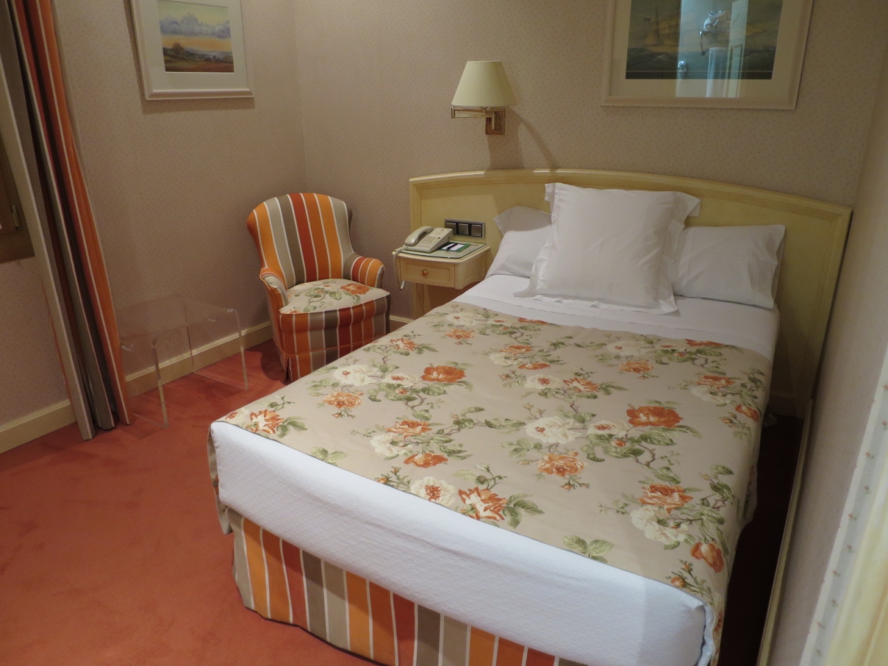 今回の私は、まさに両極端を経験することになりました、1泊目は、大聖堂に面した部屋で、広さも含め明るく快適な部屋でしたが、三日後にあらためてチェックインした部屋は、ホテルの内側に面し、窓を開けるのがためらう為、薄暗く、部屋の広さも狭く、バスルームも使い勝手も悪く、5泊は寝るだけと割り切ることになりました。