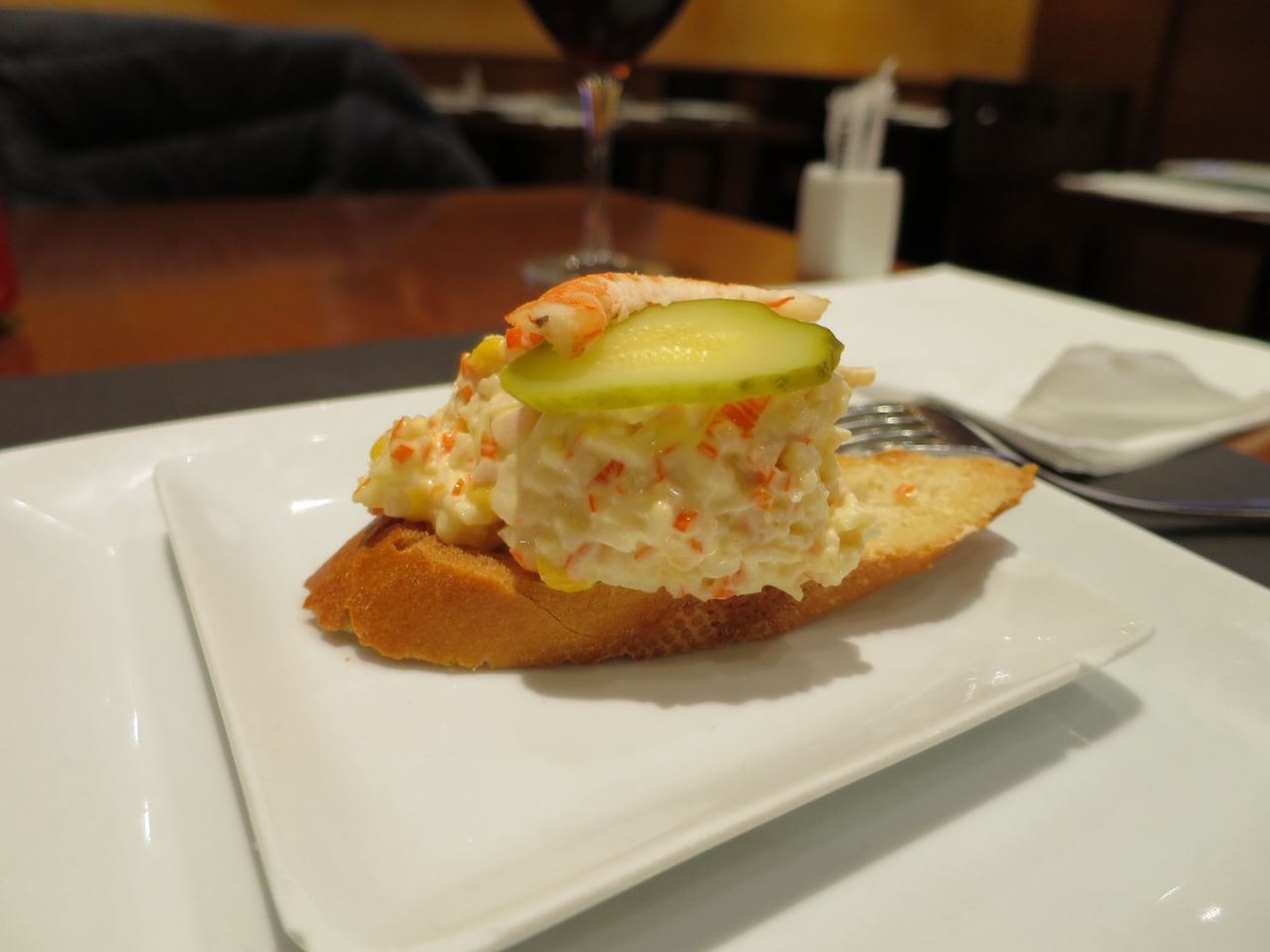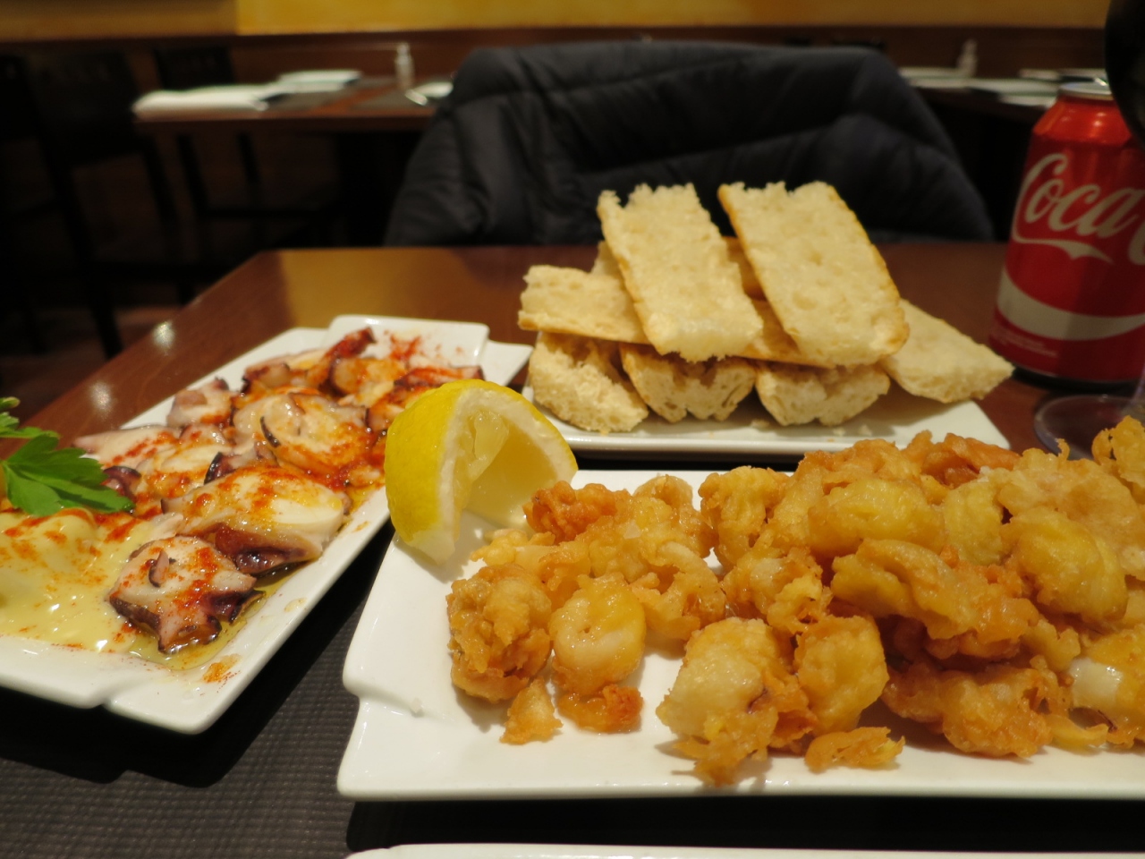 カテドラルから徒歩で5分、旧市街のバル、レストランが並ぶ通りにあります。店内は明るく、入口横はカウンタ、そして料理が並べられています、料理の内容が判らなくても見ながらオーダーできるので安心です。何よりも、スタッフの接遇がとても良く、料理の内容を説明しながら、押し付けがましくなく料理をすすめてくれます。