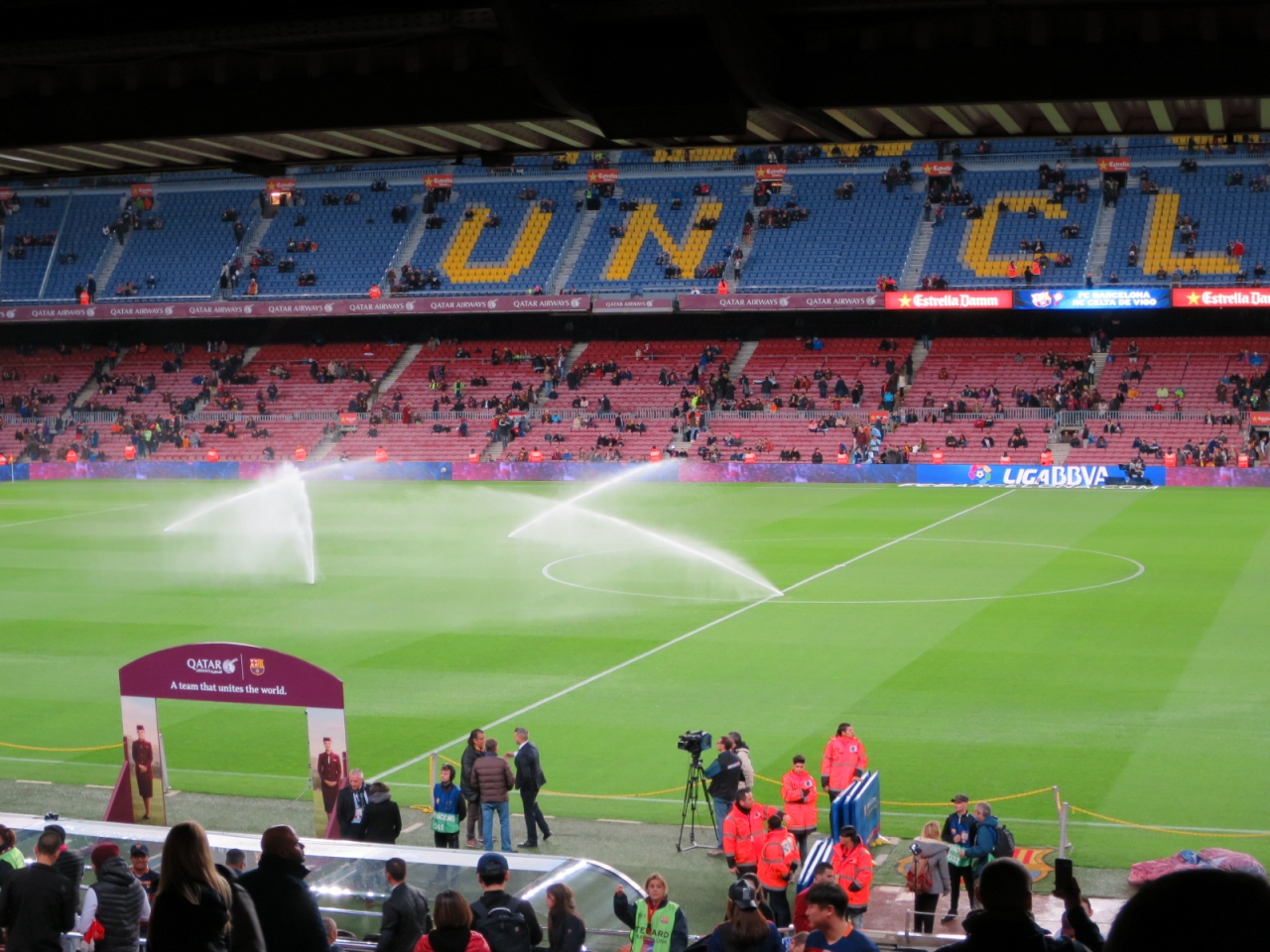 カンプ・ノウまでは地下鉄リセウ駅から向かいました、車内には明らかにスタジアムに行こうとしている方達が見うけられます。地下鉄の駅から15分位でスタジアムに到着ですが、チケットによって入場ゲートが異なると聞いていましたが、最初のゲートは、どこからでも入れたようです。但し、スタジアムへのゲートは「席」によって決まっていました。私の席は、正面1F・ピッチから23番目のセンターラインの向かって少し右側です。