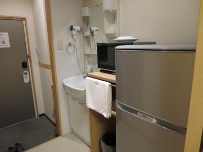 部屋は、和室(畳)もありますが、ベットタイプの部屋を利用しました。室内には、冷蔵庫、電子レンジ、洗濯機(乾燥機付き)、湯沸かし器も常備されています。但し、ちょっと狭いかもしれません(スーツケースを広げるのは困難?)