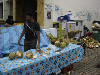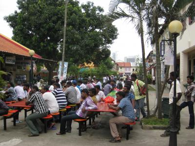 何処を見渡してもインド人ばかりです。本場のインドが恐い人はリトルインディアでインド体験してみては?比較的安全です。駅前ではココナッツを包丁でカットして羽振り良くインド人にジュースとして提供していました。町はシンガポールらしく無く人口密度も多いです。本とインド人ばかりです。ダンロップストリートはバックパッカーが集まると言われてますが、遭遇したのは一人でした。