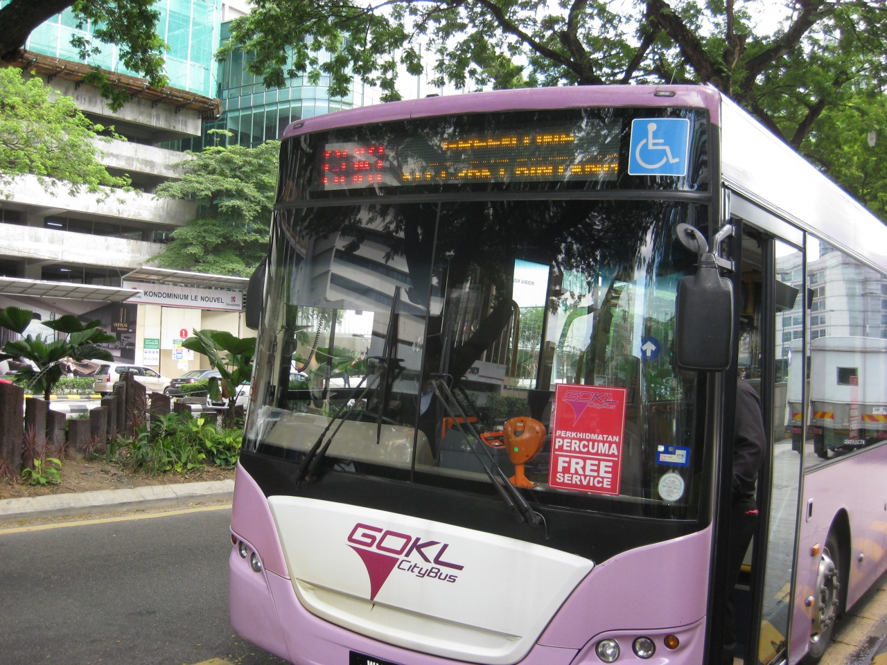 クアラルンプール中心の主要な場所に無料で乗れるGOKLバス。2路線が運転しておりパープルラインとグリーンラインがあります。バスの色では無いので乗車の時は行き先なども確認しとくと乗り間違えがないと思います。何しろ無料で乗れて主要な観光地に行けるわけですからコストパフォーマンスは非常に高いと思います。