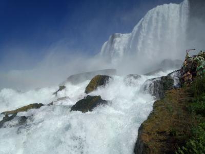 カナダ側を見たついでにアメリカに渡り「風の洞窟」に行きました。このアトラクションは必見で滝を浴びる事が出来ます。(笑)歩きで順路を進んで行くのですが徐々に近くなる滝の下はとんでもない事になります。カッパとサンダルは支給されるのですが、カッパの意味が無いぐらい濡れます。子供は叫びます。大人も叫びます。まさに絶叫です。防水カメラをお持ちの方は是非ムービーで収録すれば臨場感バツグンの画が取れます。ナイアガラ・フォールズに行かれる方は是非「風の洞窟」に行きましょう。行かないと勿体無いですよ。カッパとサンダルは持ち帰り可です。記念として持ち帰りました。サンダルは普通に使える確りとした物なので意外と嬉しかった。