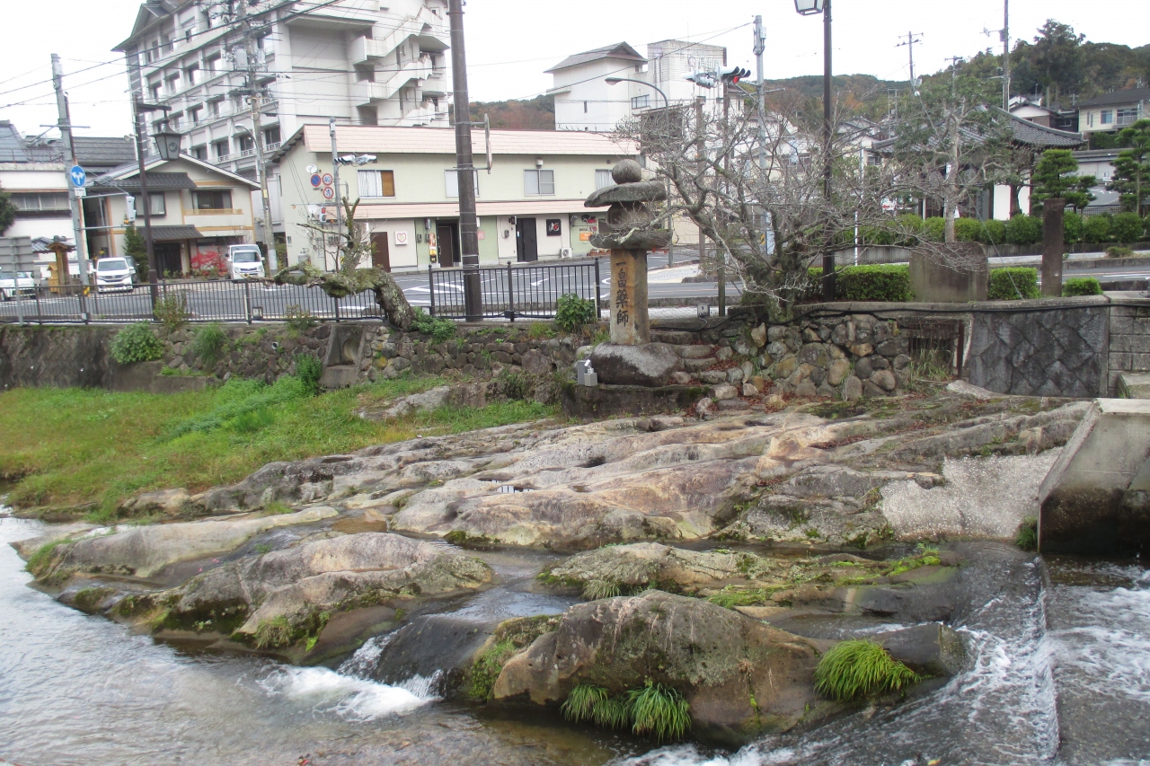 川辺の出湯跡のすぐ近く、一畠薬師の石灯籠とは対岸のところに、湯閼伽(ゆあか)の井戸がありました。不勉強で、閼伽(あか)とは何だ?でしたが、お水のことだそうですね。仏様にお供えする六種(花、灯明、線香、仏飯、水、塗香)の中の1つとなります。ここは湯薬師堂に供える水を汲み上げる井戸とのことでした。今も利用されているかは分りませんが、綺麗に掃除がされていました。