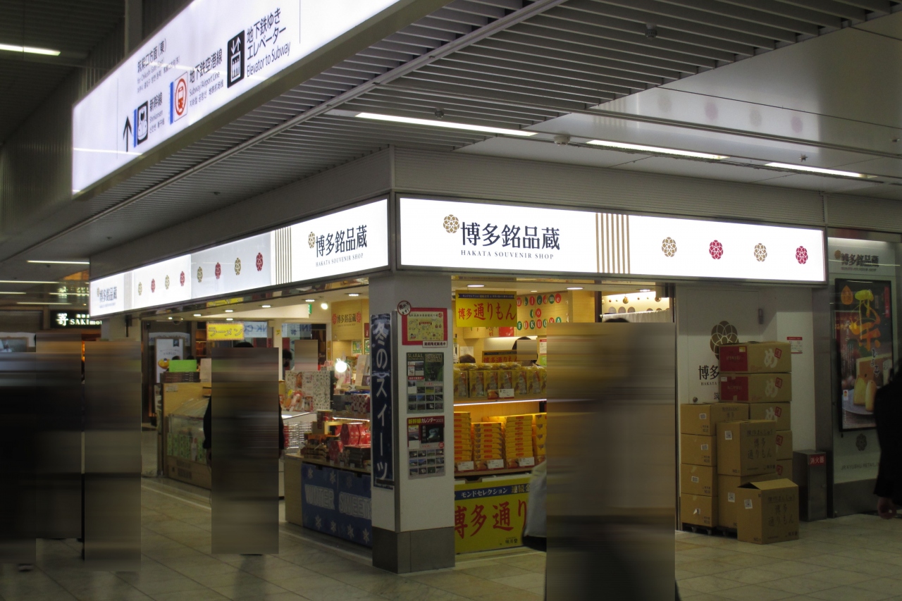 JR博多駅にはマインズとかデイトスとかたくさんのお土産品屋さんが集まっていて、何を買うか迷うところだと思いますが、JR九州関連会社が展開する銘品蔵も中央通路に3店もありました。JR各駅に展開されている銘品蔵ではお土産品は一通り揃っていますから、時間のないときには特に便利に利用出来ると思いました。