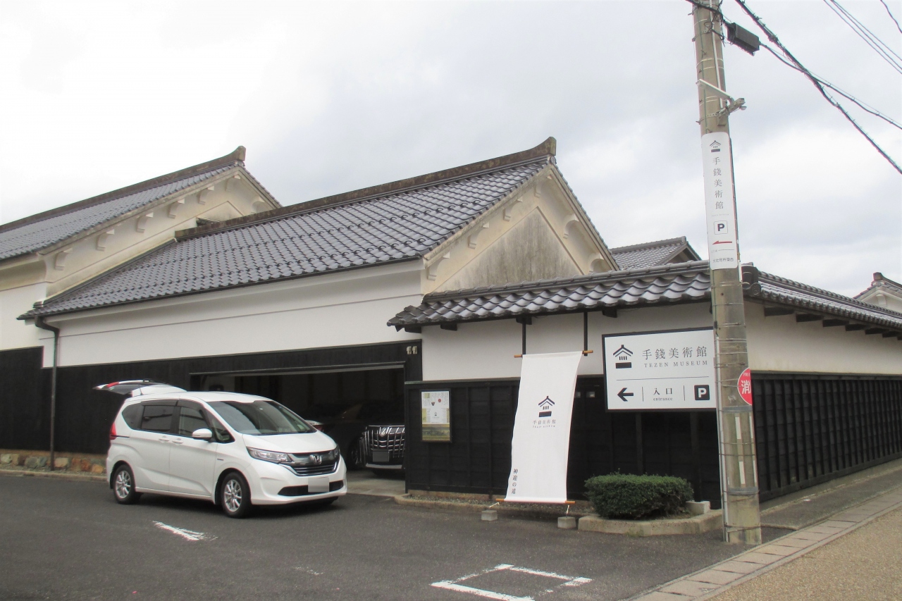 神迎の道に面して、手錢(てぜん)美術館がありました。以前は手錢記念館といっていたそうですが、今年(2022年)から手錢美術館と名称を変更したそうです。手錢家は江戸時代の初めから続く出雲の名家で、名字帯刀を許されて、何と、藩主や藩の重役の宿となる程だったのだそうです。元禄時代から明治維新までは造り酒屋を営んでいて、展示室は当時の米蔵や酒蔵とのことです。その手錢家の代々の当主が集めた茶道や華道など美術工芸品などが展示されていました。出雲は、茶人大名とも呼ばれた松江藩主を生んだところですから、そもそも美術工芸への感心が高かったのでしょうね。