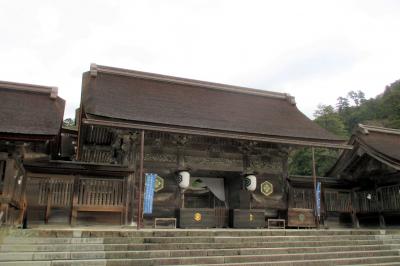 出雲大社は、まずは参道の松並木が参拝の気分を盛り上げてくれますね。寛永年間(1624年~45年)に松江藩主・堀尾忠氏の夫人だった長松院が、祈願成就の御礼に松の木1、000本を奉納したものだそうです。現在、大きな松を目にすることはほとんどありませんが、江戸時代の木は数10本程度だそうです。御祭神は大国主大神(おおくにぬしのおおかみ)です。出雲大社は江戸時代に2回大きな造営をしています。1回目は寛文の御造営で、1667年(寛文7年)に 幕府は2千貫を御造営費として寄進しました。この時に神仏分離が行なわれたそうです。この時の建物では八足門や楼門、回廊が残っている(解体移築)とのことです。2回目は1744年(延享元年)に行なわれた延享の御造営です。費用は日本勧化と呼ばれた、全国への御造営御浄財の募材活動で賄われたそうです。なお、拝殿は火災に遭い、1959年(昭和34年)に再建されたものでした。