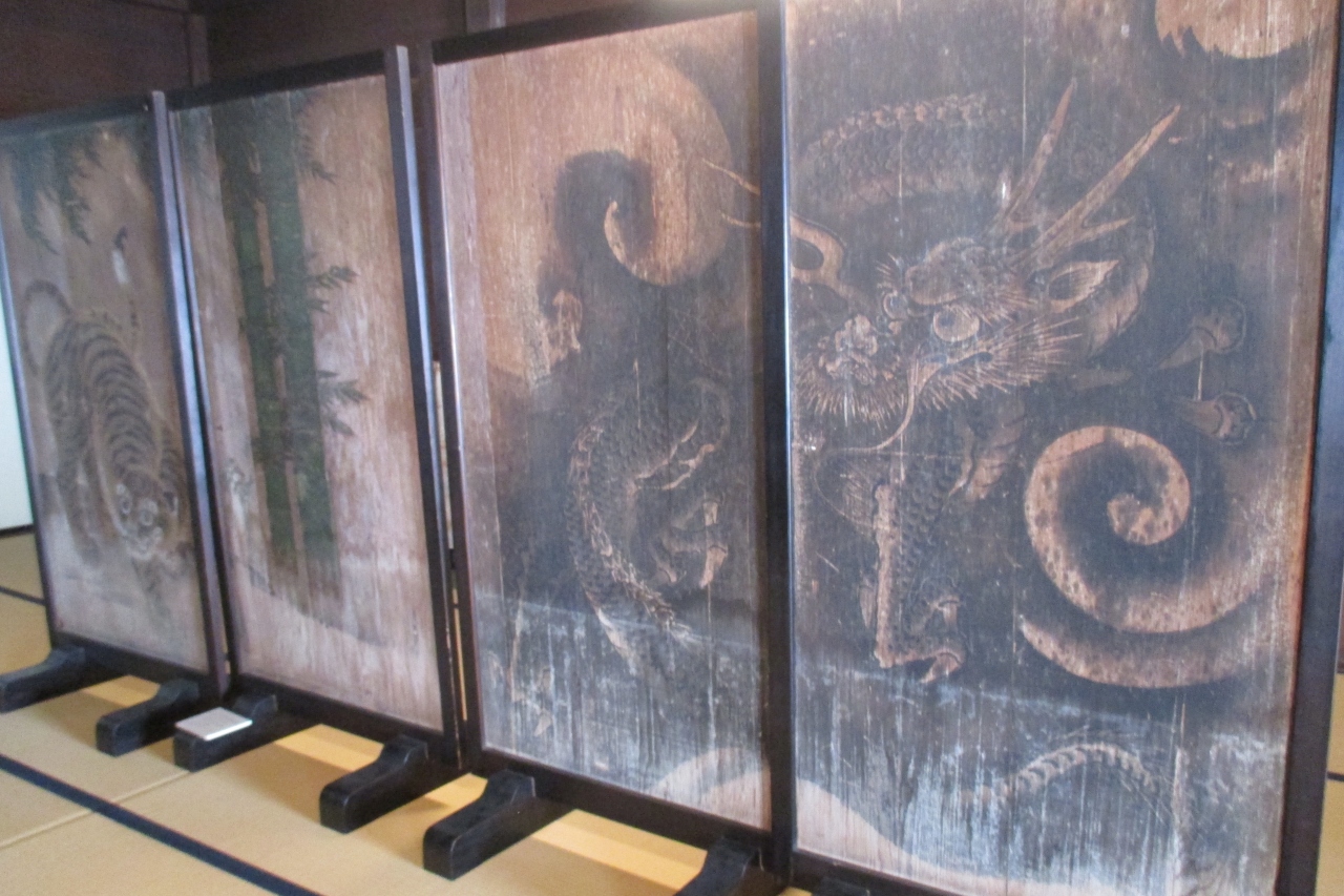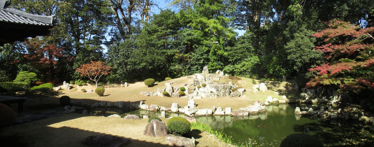 さて、趣のある山門を潜ります。境内は広く開いていて、正面には約650年前の築造となる大きな本堂の優美な姿があります。まずは、本堂横の入口で手続きをして本堂裏の庭園に向かいます。夢に見たいと思う理想的なお庭の様に感じました。後ほど、地上からの目線で見てみましたが、やはり、本堂の濡れ縁の高さから見る様に考えられていると思いました。ど素人は大きさのある石の集まったところに目が行きますが、左端にある三尊石がこのお庭のキーなのだそうですね。本堂も拝観できます。お宝の様な仏像、仏画、竜虎の衝立などがたくさん見られます。、特に、龍の欄間は見応えがありました。なお、萬福寺の山号は清瀧山で、時宗のお寺さんです。- 旅行時期