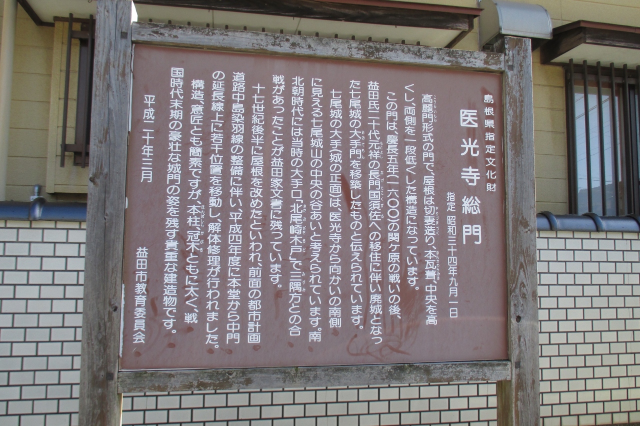 萬福寺の東方向、直線で500mくらいのところに、益田で雪舟の作と伝わる2つの庭園のうちの1つがある医光寺がありました。医光寺は、1363年(貞治2年)に創建された大伽藍の崇観寺の塔頭でしたが、後に、崇観寺は衰退し、その後を継ぐ形で現在まで続いています。