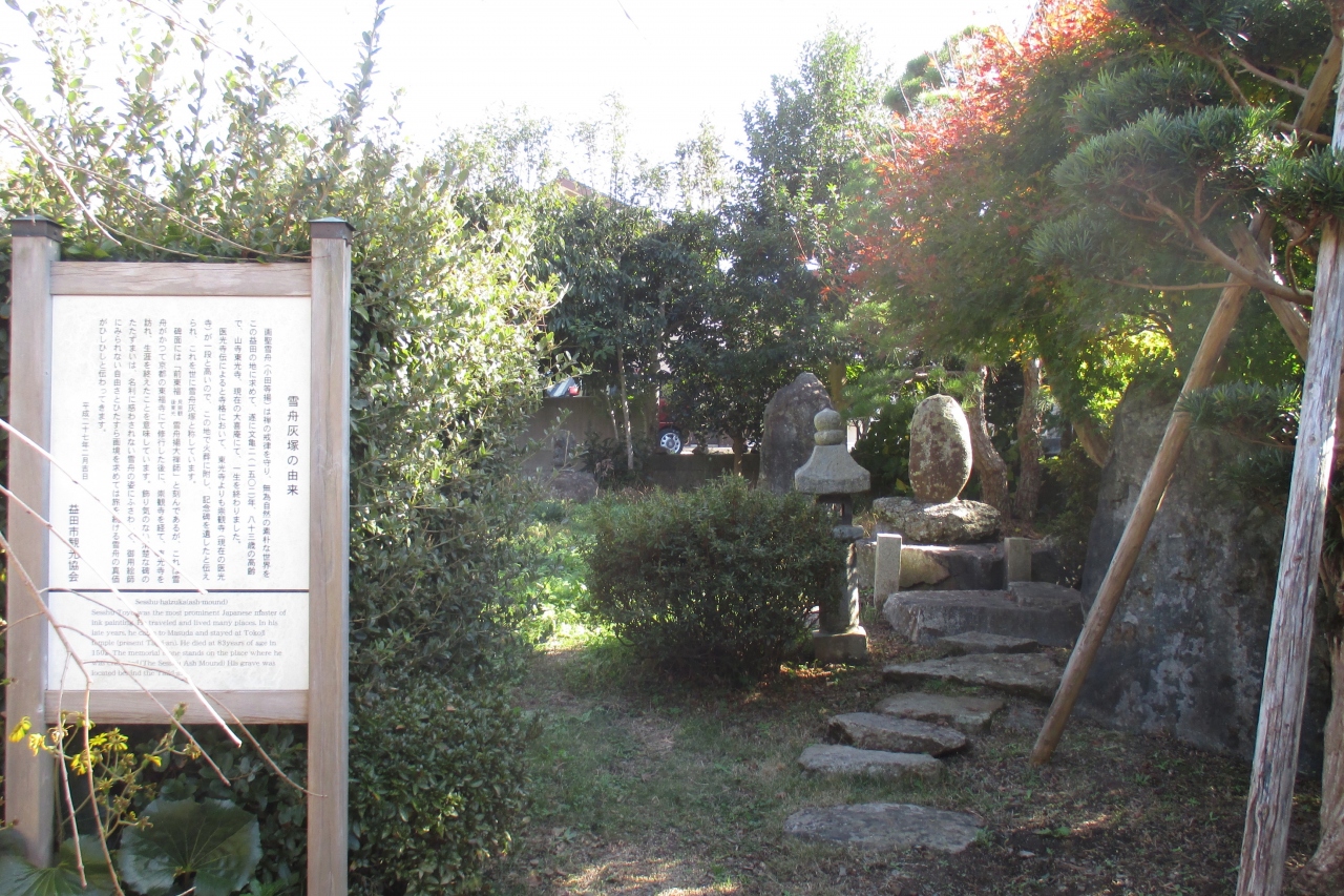 お墓の真後ろに隠れる様に「雪舟禅師追褒塔」がありました。雪舟顕彰会が500回忌を記念して2005年(平成17年)に建立したもので、元のお墓の場所を保存することを目的にしたものだそうです。
