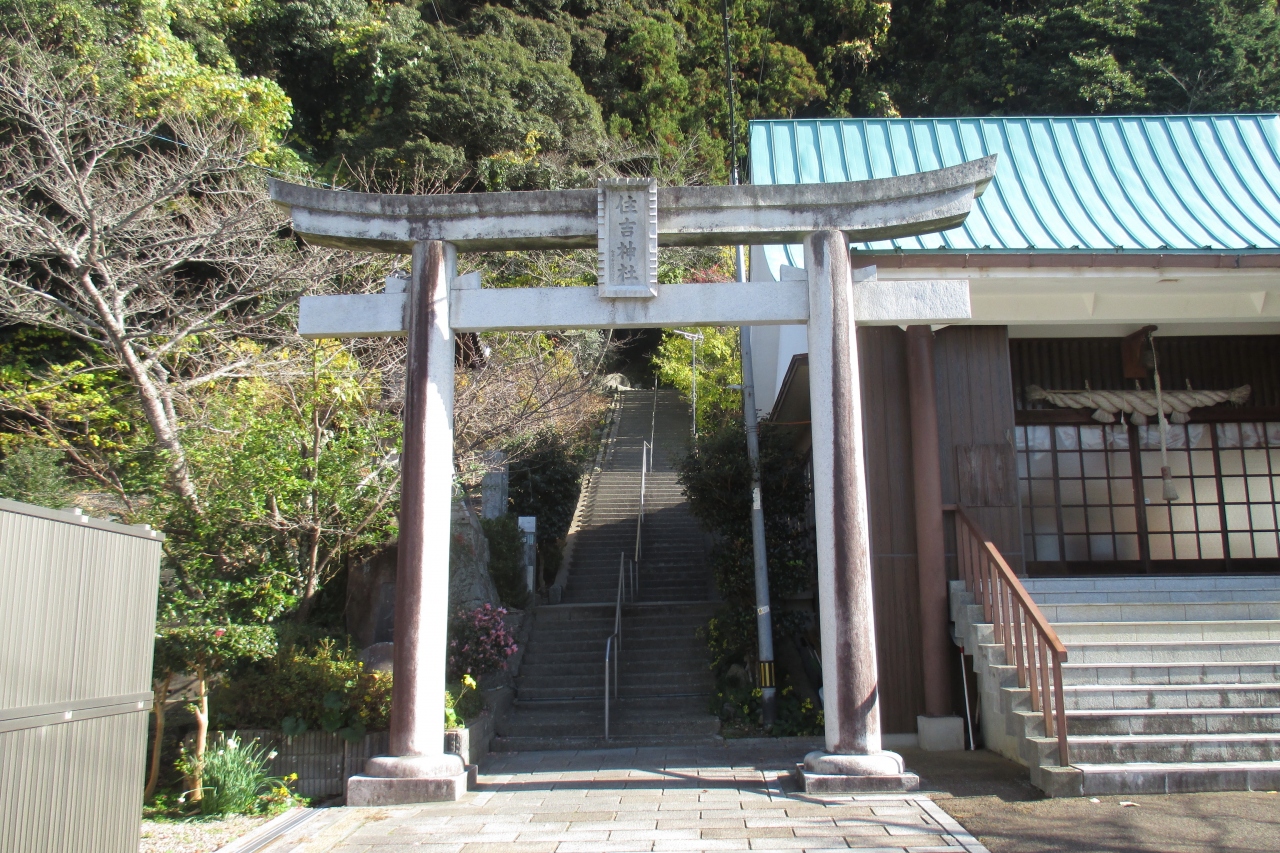 高津川の河口近く、白上川との合流点辺りに、高津柿本神社がありました。歌聖と呼ばれる柿本人麻呂を祀っている神社です。柿本人麻呂は724年(神亀元年)に亡くなったとされています。終焉の地は益田の沖合にあった(とされる)鴨島とされ、聖武天皇の勅命によりそこに人麻呂を祀る小社が建立されたといわれています。鴨島は1026年(万寿3年)に起こった大地震で海中に没してしまい、ご神体の漂着した高津松崎に地元の人々によって人丸社が建てられ、信仰されたそうです。お社の傷みが激しくなってしまった1681年(天和元年)に、津和野藩主亀井茲親によって、現在地の高角山に遷宮造営されたとのことです。