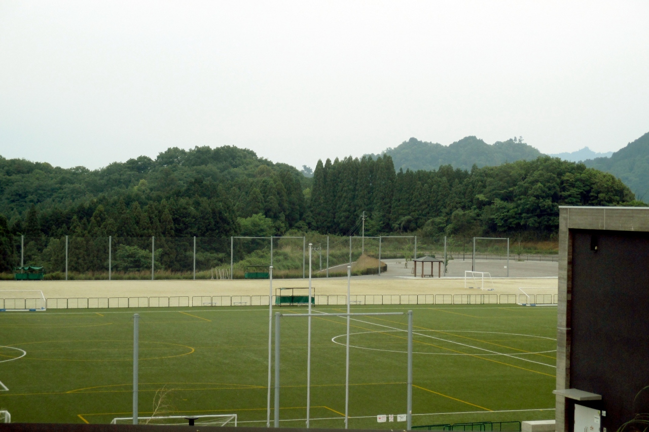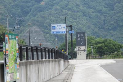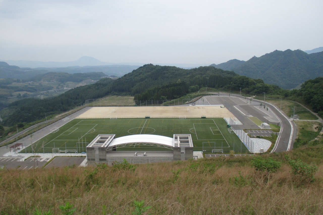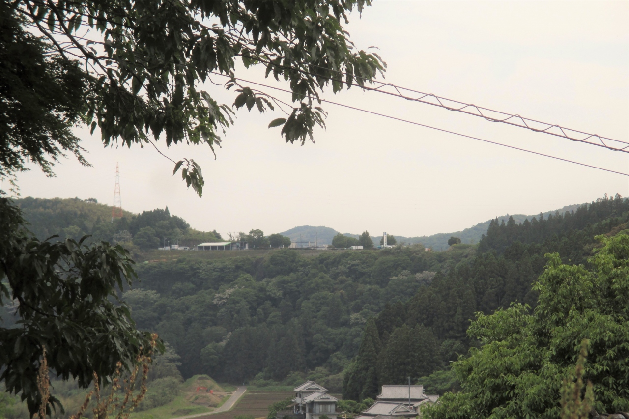 「のつはる」とひらがなで書かれると、旅行者としては何の意味だろうと考えてしまいます。これが漢字だと津野原だといわれるとやっとピンときました。豊後街道の今宿の隣の宿場ですね。東京近辺では「原」を「はる」とか「ばる」とか読むことはありませんから、致し方ないところかと思います。肝心の「のつはる天空広場」ですが、近くの七瀬川に架けられたななせダムと深い関係がありました。ななせダムはロックフィルダムですが、その堤体に使用する土(コア材)を採取した山の跡地を整備して出来たのがこの「のつはる天空広場」とのことです。まだ出来立てです。多目的グラウンドともう1段上の展望広場からなっていました。もちろん、展望広場に上がって、展望を楽しみました。何と、高崎山まで見えました。