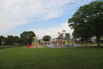 大原総合公園は、豊後大野市の高台に拡がっていました。中心となる施設としては、陸上競技場、野球場、馬場、サッカー場、テニスコートとあり、屋内では総合体育館があります。また、ツツジの大原公園もあります。そして、若干の遊具が置かれていただけの芝生広場が、今年の4月に大規模な遊具施設に大変身しました。子育て支援を標榜する地方自治体は多いと思いますが、その先端を行く様な遊具の充実ぶりでした。遊具は、児童用エリア、幼児用エリア、乳幼児用エリア、そして、ユニバーサル(インクルーシブ)エリアとあり、全部で49アイテムあるとのことです。