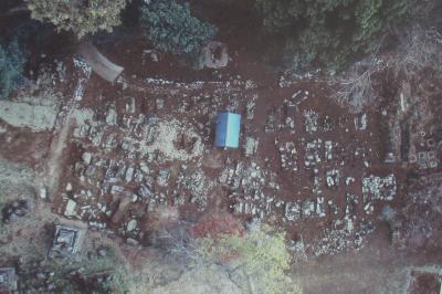 下藤キリシタン墓地は、磨崖クルスの西方、吉四六ランドの北方の丘上の畑の先にありました。最後は麦やたばこの畑の農道を300mくらい歩きます。下藤キリシタン墓地は発掘時に林が切り開かれたのか、土の広場となっていました。発掘調査では南北35m,東西18mの範囲に、66基のキリシタン墓が見つかったそうです。これだけ纏まった墓地の発見は全国で初めてだそうです。現在は調査が終わって埋め戻されていました。周りの林の中には墓石の様なものが放置されていましたが何なのでしょうかね。ここは豊後国の野津と呼ばれる地区ですが、大友宗麟の改宗時期に合わせた様に、数千人のキリシタンが居たそうです。禁教令により棄教した人も多かったでしょうが、お墓の数が随分と少ないです。ここは例外的に残ったので、廃棄されたものも多かったのでしょうね。