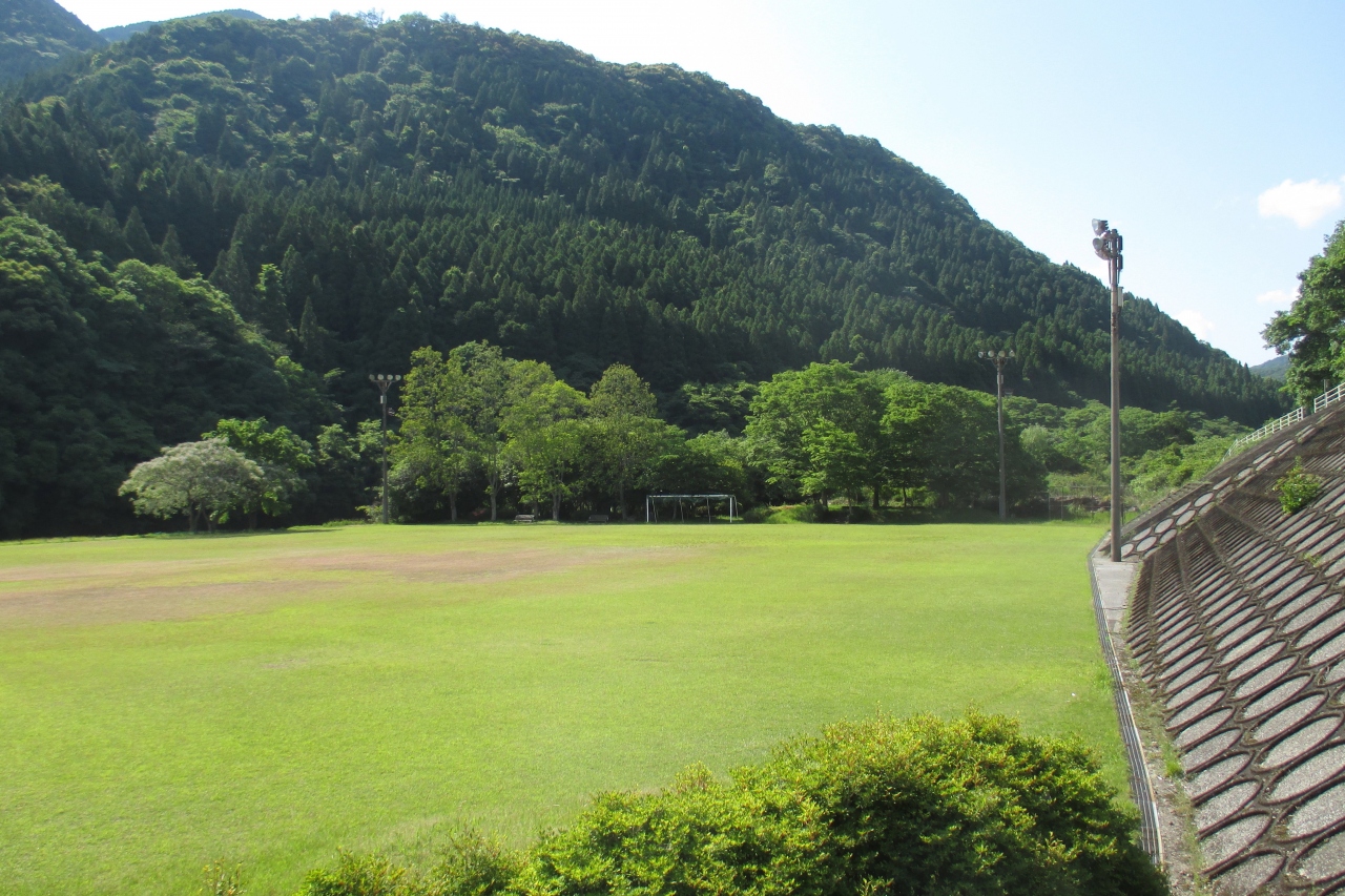 耶馬溪ダムスポーツ公園は、耶馬溪ダムで造られた耶馬溪湖が終わったその奥のところに、県道28号線沿いにありました。山移川がカーブして流れて広場になったところでした。多目的グラウンドだけがある公園です。県道28号線に並行して公園に向かう坂道にはメタセコイアの並木がありました。和名はアケボノスギですが、たまに見掛ける木ですね。恐竜が跋扈していた中生代から生き続けている化石のような植物なのですね。