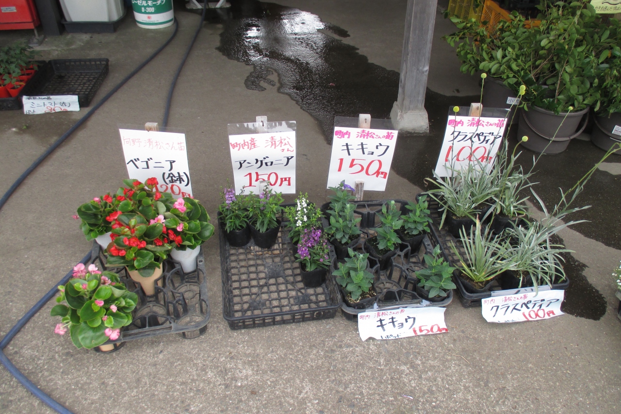 みくにの里農林水産物直売所は、豊後大野市の中心近くの国道326号線沿いにありました。こちらは地元の農家320軒ほどが参加している、地元の野菜を中心に直販しているお店とのことです。午前中に通り掛かった時に、何台かの車が出入りしていて、地元では人気のお店らしいと思いました。午後に通り掛かった時に寄ってみると、車の数は減っていましたが、野菜や野菜の苗、お花を売っていました。それぞれ生産者の名前が付いていて、生産者と消費者が直結しているのを感じました。