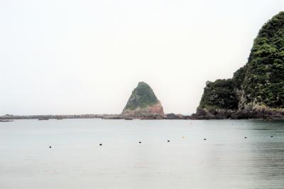 浦城海水浴場は七ツ島展望所から旧道を下りきったところにありました。須美江海水浴場とは西隣の海水浴場となりますが、今年は海水浴場として海開きはしないのだそうです。ビーチとしては良いところだと思うのですが・・・。ビーチの東端の先には日豊汽船の浦城港がありました。島浦島と結んでいて、高速船とカーフェリーの2種が運航しているとのことです。ここからも、今まで何回か目にしてきた、特徴的な形をした立礁が見えました。ここが見られる場所の最後だと思いますから、しっかりと目に焼き付けておきましょう。