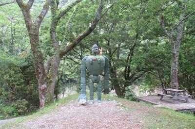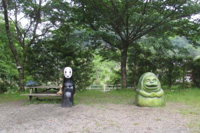 国道326号線を走っていて、北川にある下赤ダムの近く、延岡市下赤の押しボタン式の信号で東に入ったところに、ジブリのキャラクターが置かれていました。ベンチに座ったカオナシ、横にはオーム、左には大きなロボット兵、後ろの枝にはコダマが・・・。周りには、ヤックル、石人、マルクルも見られました。ここは個人のお宅の横にある広場の様なところで、お邪魔して良いのかな?と心配になるところでしたが、オブジェ作りも、場所の提供も、地元の協力で行なわれているそうです。その気持ちを汲んで訪れたいですね。