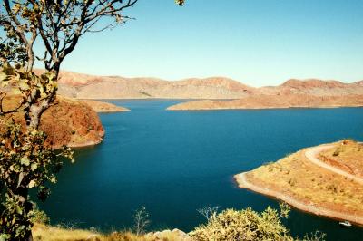 1971年にオード川を発電用に堰き止めたオード・リバー・ダムによって造られたダム湖・アーガイル湖を見に行きました。このアーガイル湖は南半球最大の人工湖なのです。長さ5~60km、幅20kmくらいの広大なもので、説明にはシドニー湾の10杯分あるということですが、ますます想像がつきません。