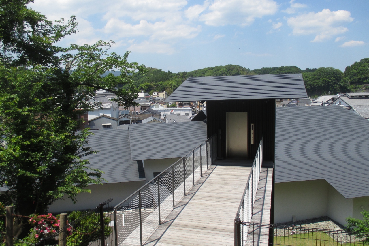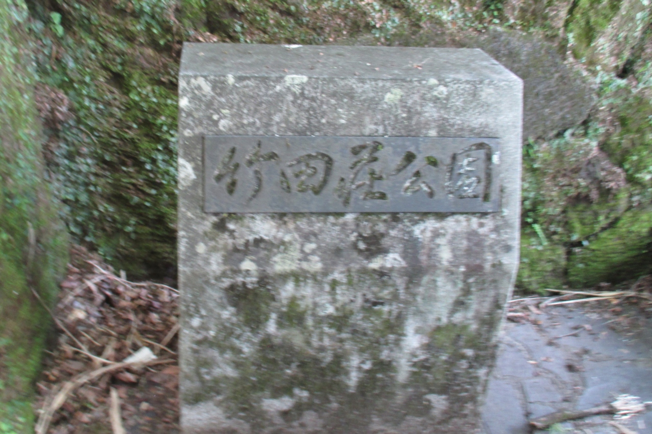 竹田荘公園は本町通りの先から長い石段を上がって行ったところにありますが、今回は横着をしました。竹田市歴史文化館・由学館は本館の建物と別館?となる旧竹田荘の移動を助けるエレベータが設置されています。エレベータで上がって、左が旧竹田荘ですが、右に進むと竹田荘公園でした。四阿のあるところの広場から町並みが見えるかと期待しましたがダメでした。もう1段上の展望台に上がれば見通しが良くなるかと思いましたが、イノシシ注意!の掲示がありましたから断念しました。